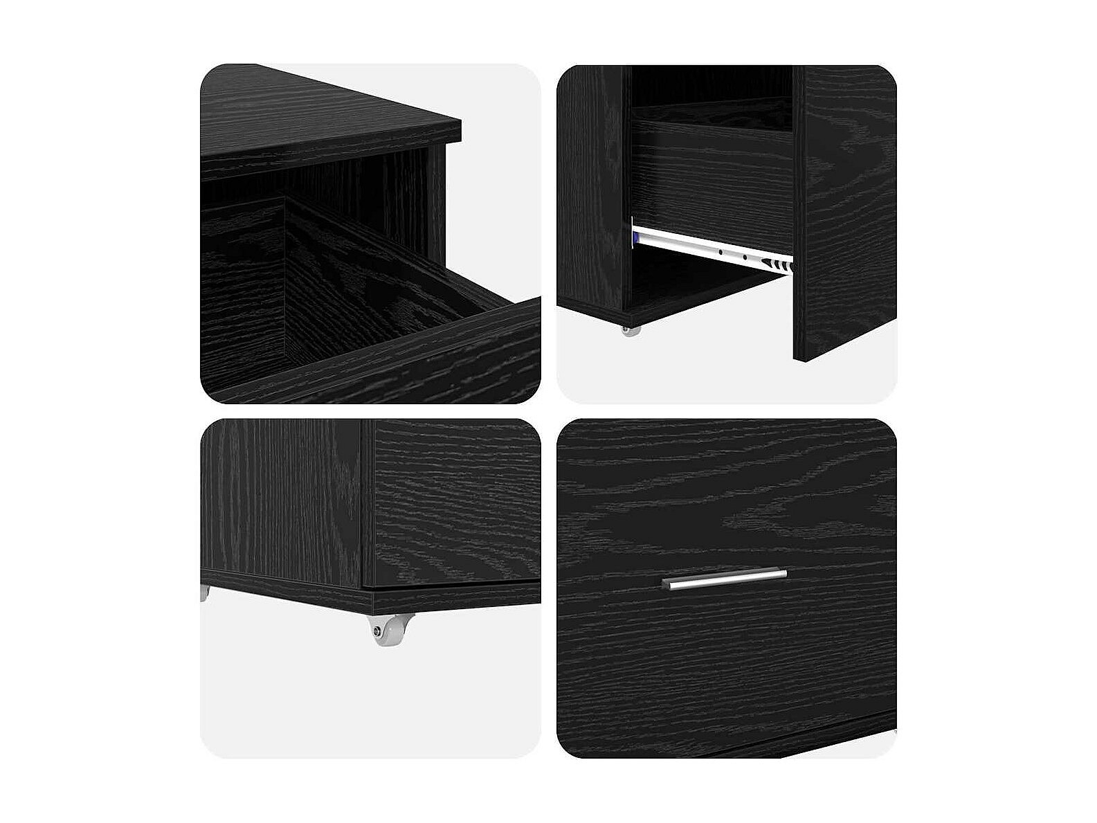 Escritorio con Ruedas con cajón Roble Negro 91 x 50 x 77 cm