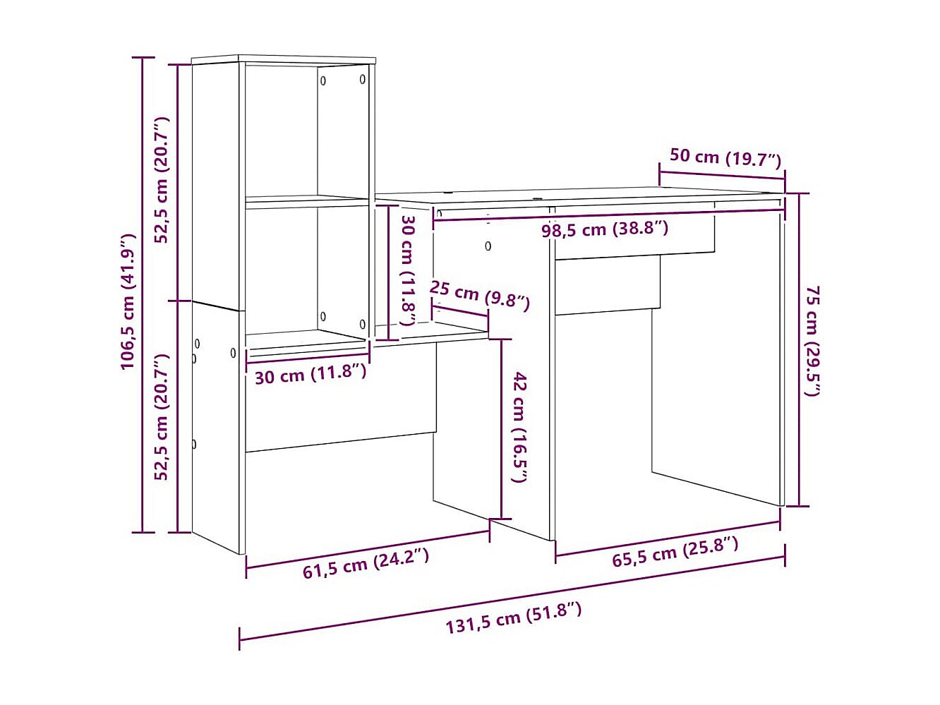 Escritorio con estante Roble ahumado 131.5 x 50 x 106.5 cm