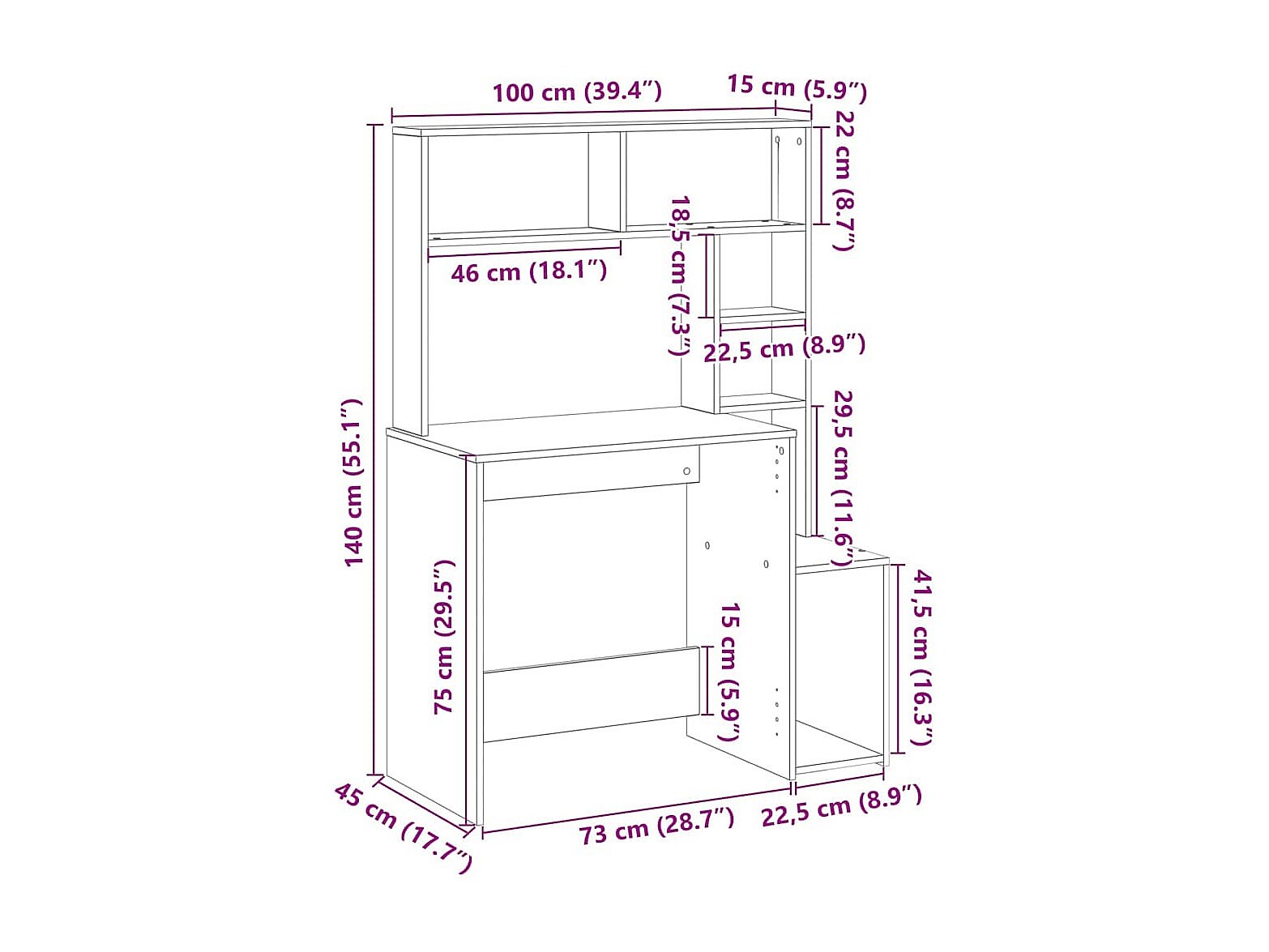 Escritorio con estantes contrachapada gris Sonoma 100x45x140 cm