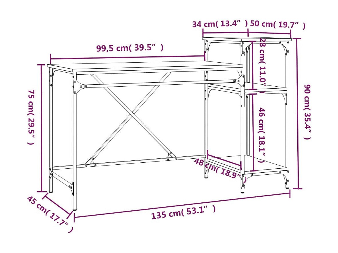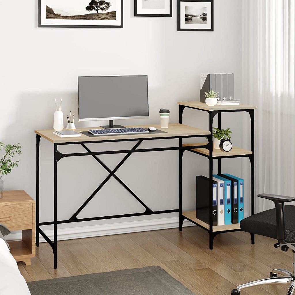 Escritorio con estantes madera contrachapada roble 135x50x90 cm