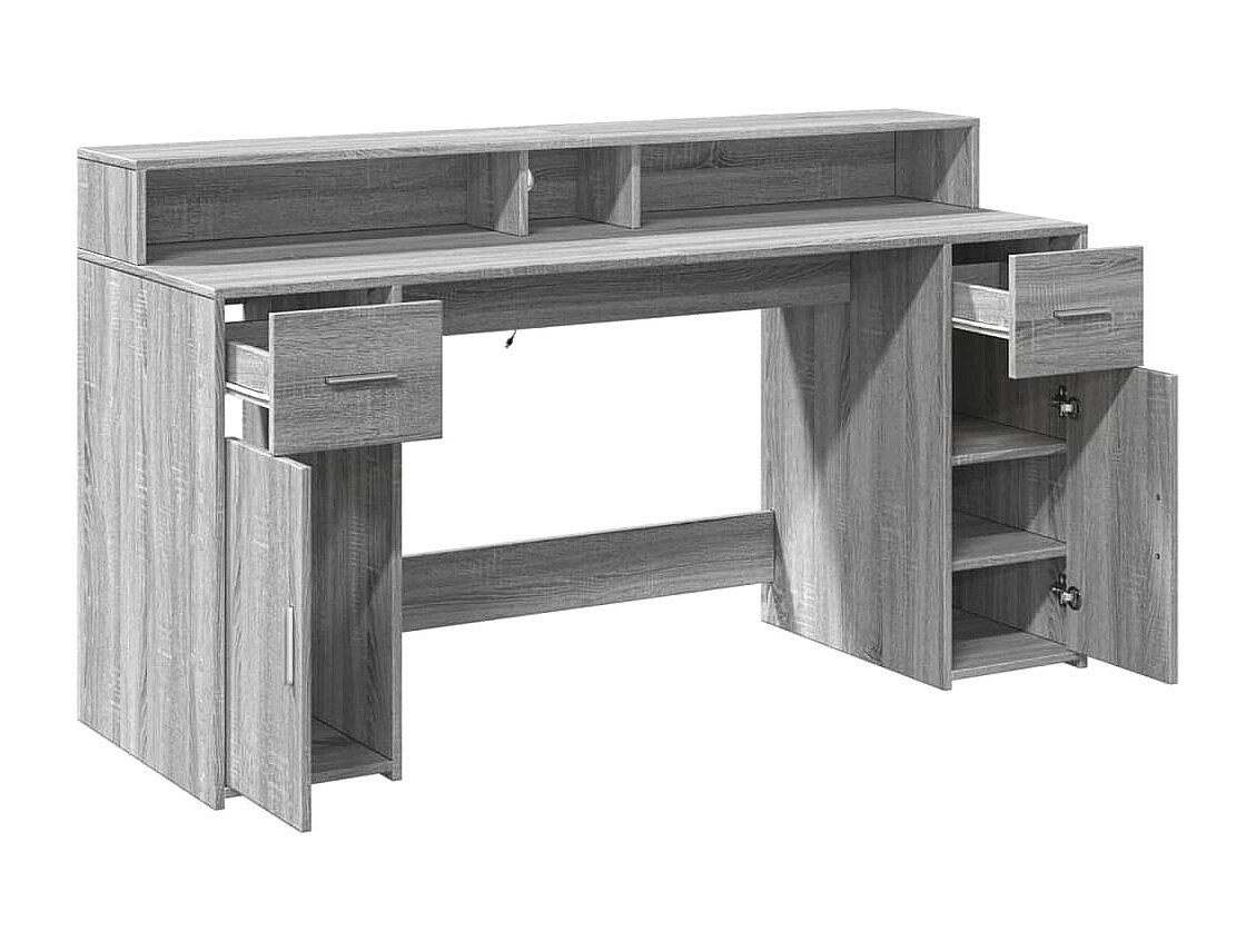 Escritorio con LED madera ingeniería gris sonoma 160x55x91 cm