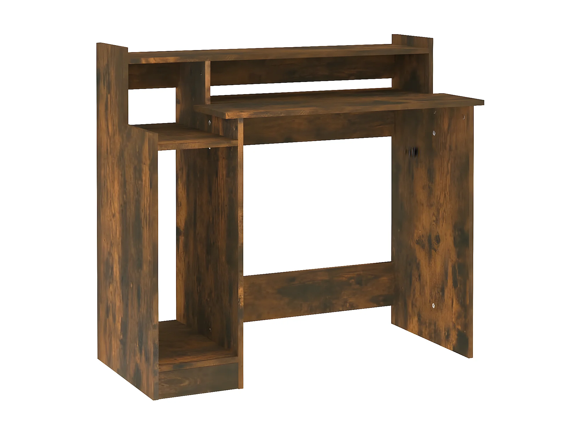 Escritorio con estantes abiertos, soporte para CPU, estructura de metal, madera, roble (113x45x138,5 cm)