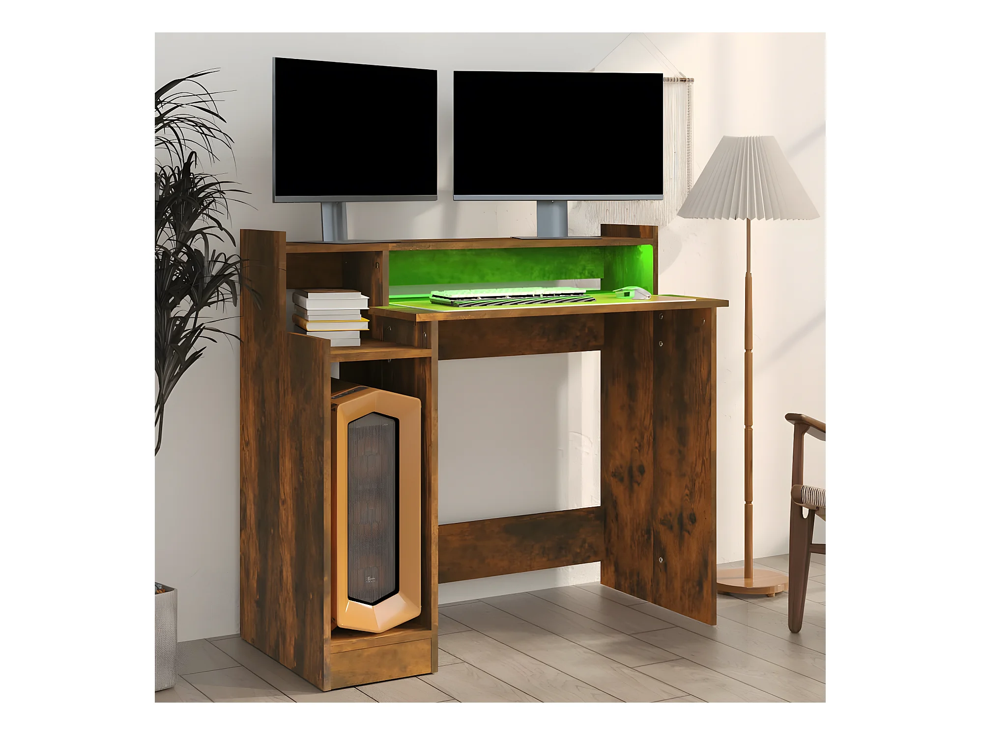 Escritorio con LED madera ingeniería roble ahumado 97x45x90 cm