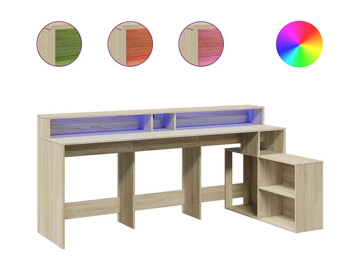 Escritorio con LED madera ingeniería roble Sonoma 200x104x91 cm