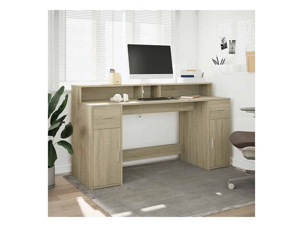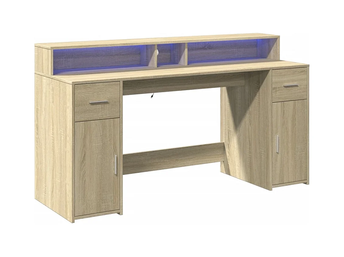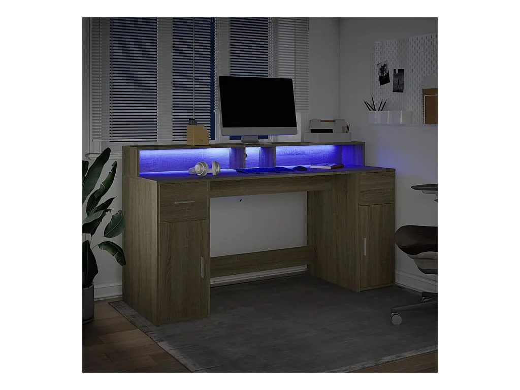 Escritorio con luces LED de madera de ingeniería de roble Sonoma
