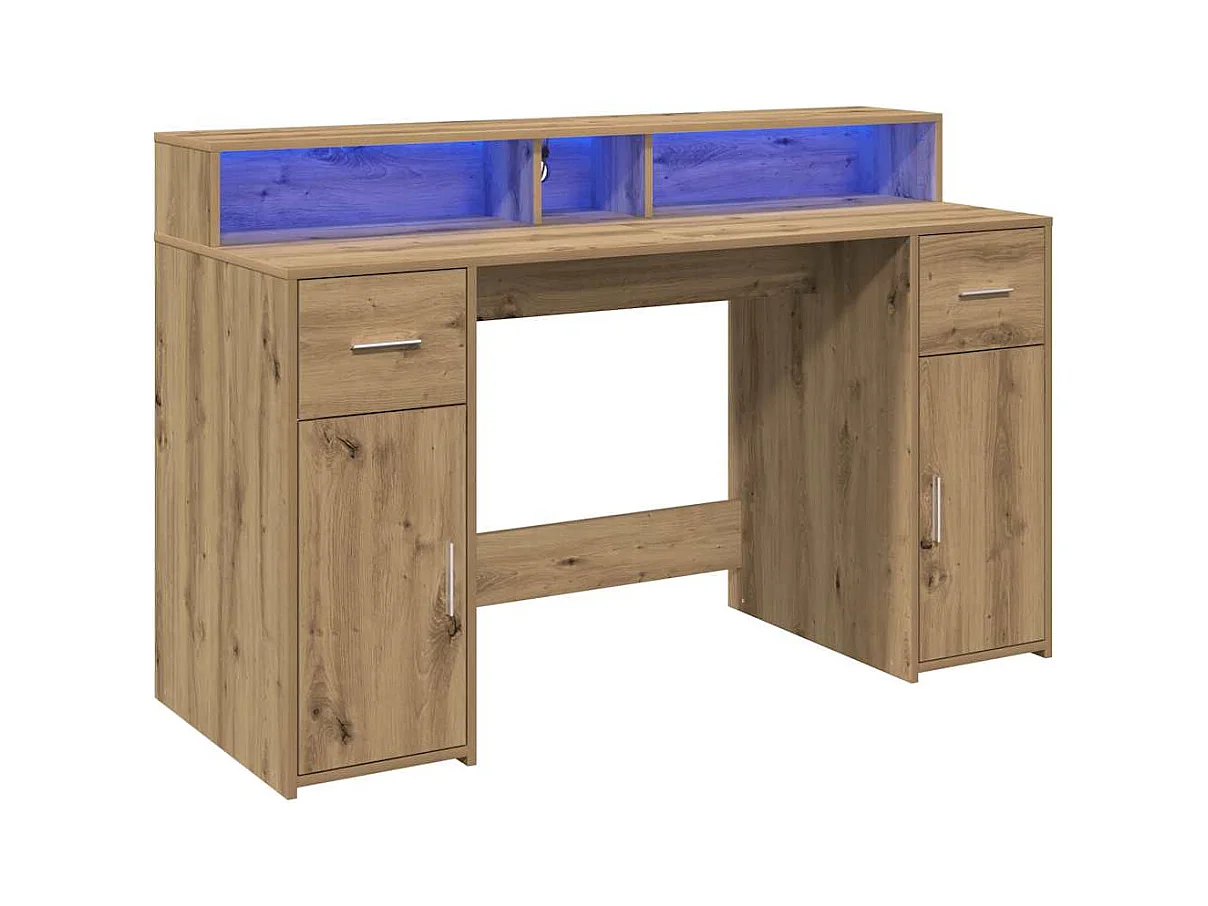 Escritorio con luces LED fabricado artesanalmente en madera de roble.