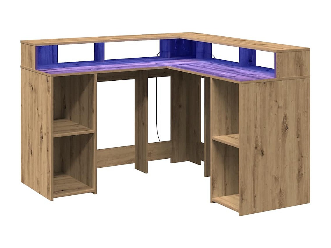 Escritorio con luz LED madera ingeniería artisian 130x130x91 cm