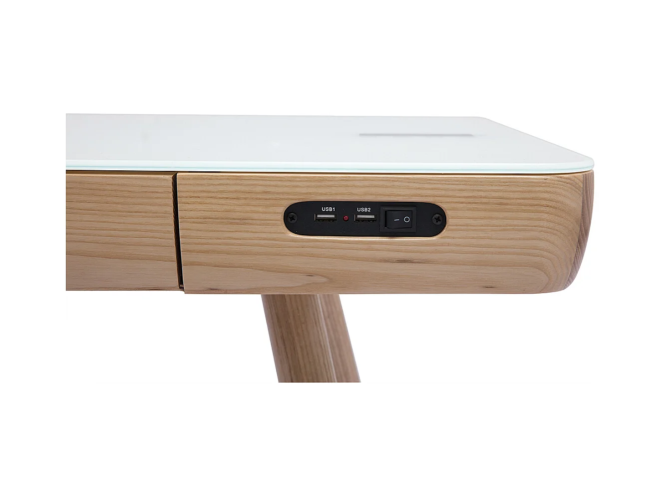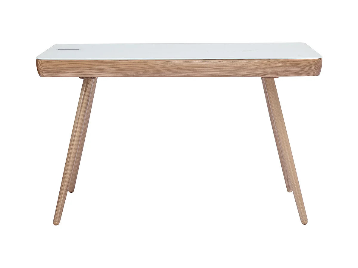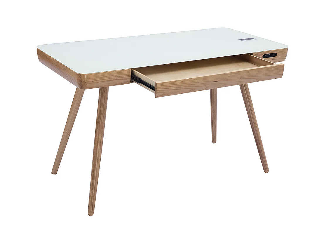 Escritorio conectado multimedia - Cristal blanco y madera CLEVER