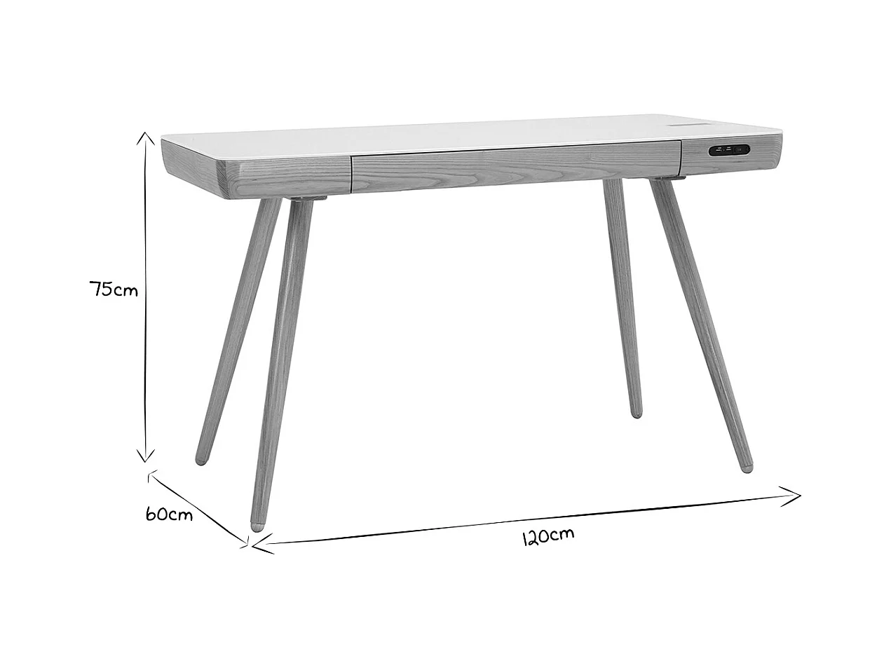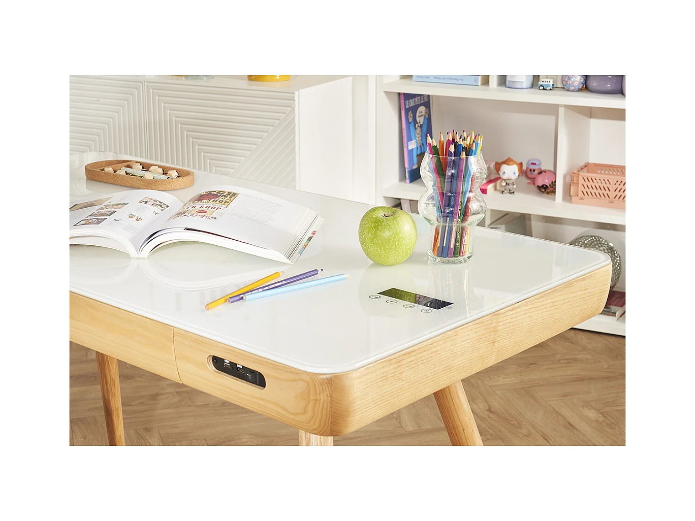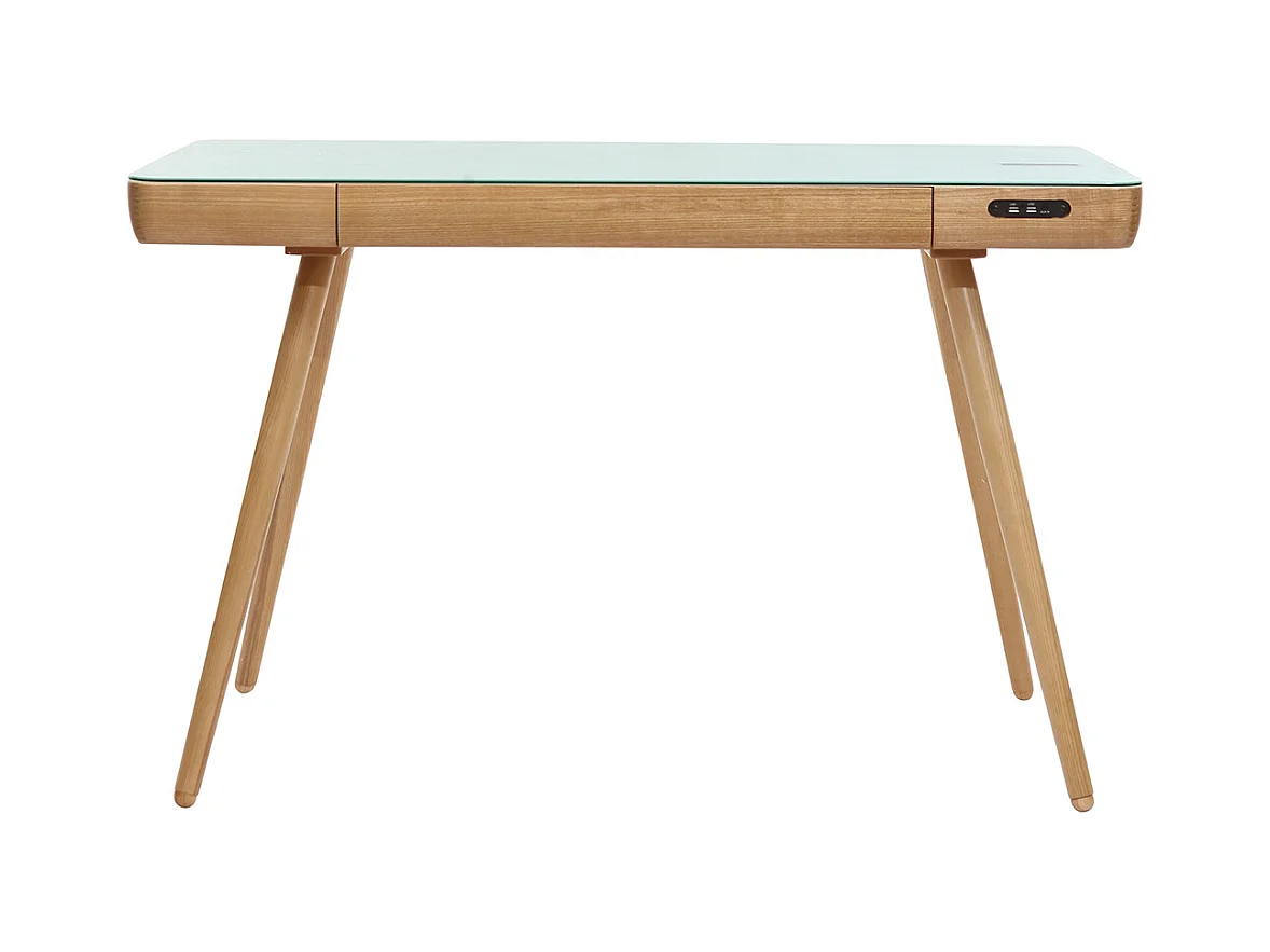 Escritorio conectado multimedia - Cristal blanco y madera CLEVER