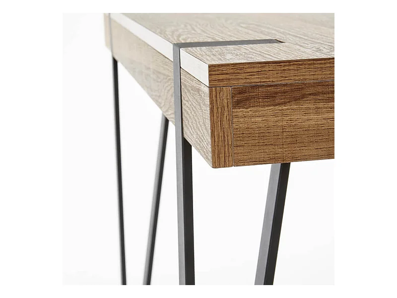 Escritorio de estilo industrial 110 x 50 cm en roble dorado y metal negro WORKER
