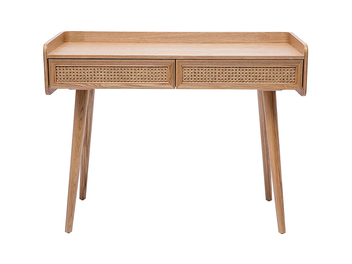 Escritorio de madera clara con cajonera de caña de ratán 120 cm GALINA