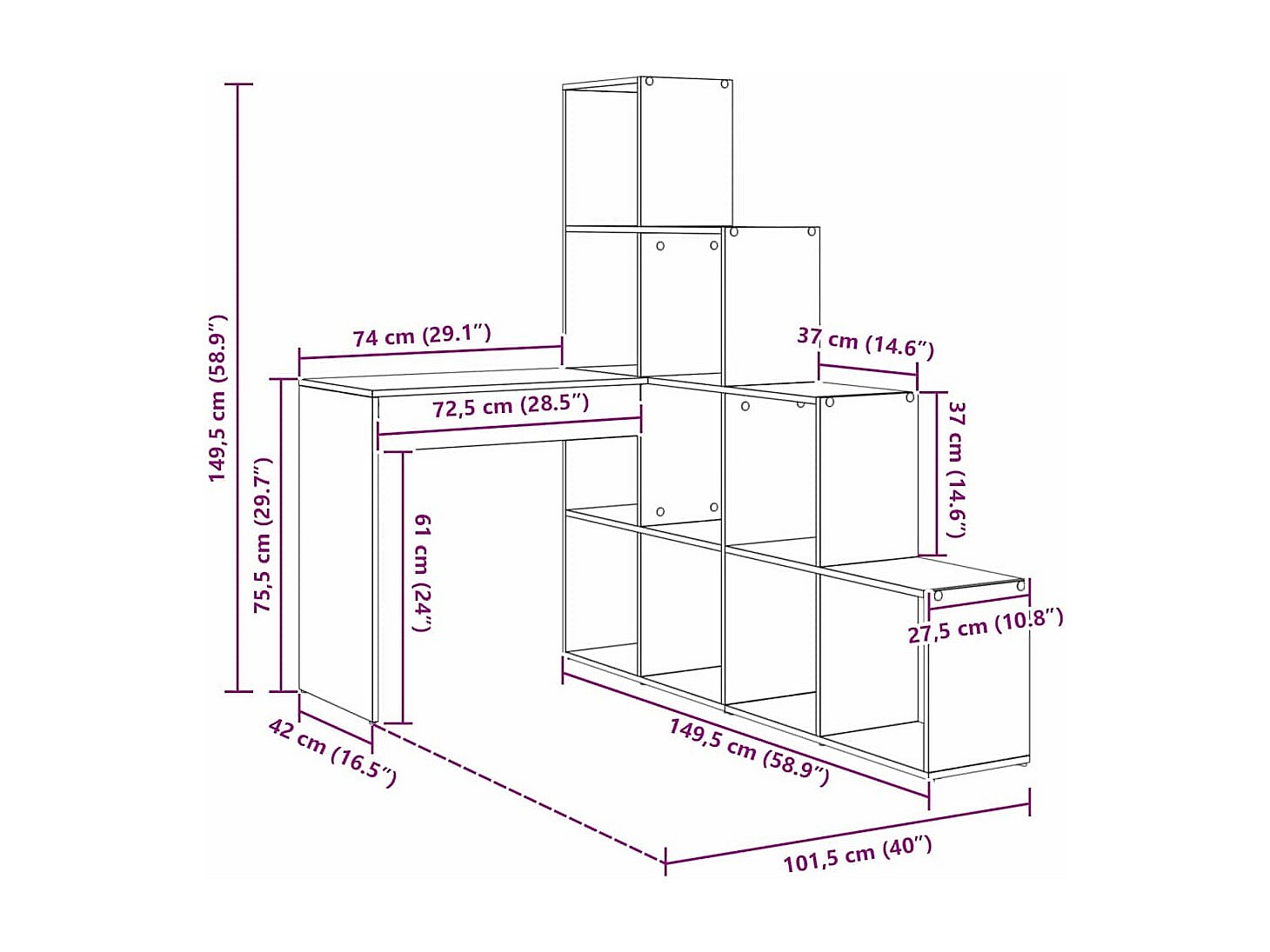 Escritorio de Esquina 101.5 x 149.5 x 149.5 cm