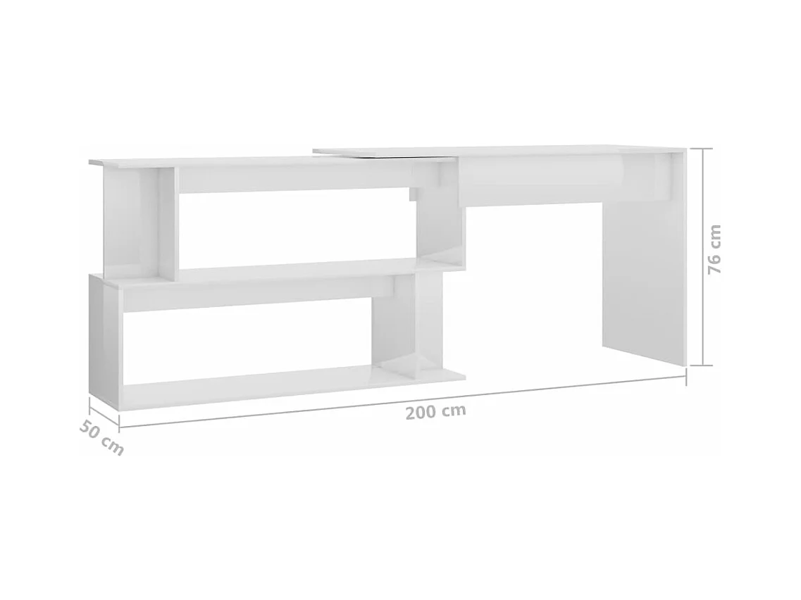 Escritorio de esquina contrachapada blanco brillo 200x50x76 cm
