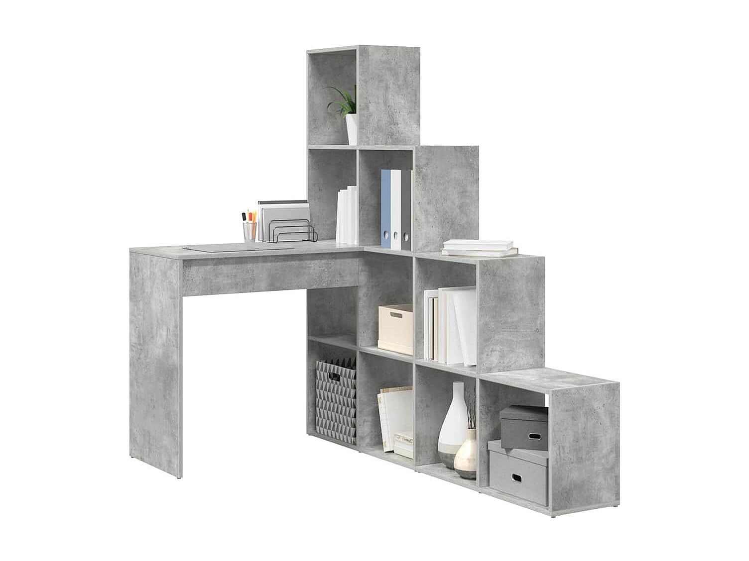Clicnbuy le ofrece : Este Escritorio de Esquina con Almacenamiento es una solución inteligente para optimizar el espacio de trabajo en tu oficina en casa o estudio. Diseñado en un estilo moderno, combina sin esfuerzo la simplicidad con la funcionalidad para mejorar tu productividad. Con sus líneas limpias y una textura suave y sutil, ofrece una vibra contemporánea que es práctica y estéticamente agradable para cualquier entorno. La forma en esquina ahorra espacio, haciéndolo ideal para maximizar el uso en áreas compactas, mientras proporciona una superficie sustancial para múltiples monitores o estaciones de trabajo. Material de Madera Elaborada Hecho de madera elaborada de alta calidad, este escritorio asegura fuerza y estabilidad para un uso a largo plazo. Su robusta construcción apoya una variedad de tareas de oficina y mantiene una apariencia elegante gracias a la resistencia del material a los arañazos y su fácil mantenimiento. Amplio Almacenamiento Ofreciendo generosas opciones de almacenamiento, este escritorio incluye estantes para mantener tu espacio de trabajo organizado. Ya sea para libros, archivos o suministros de oficina, hay mucho espacio para guardar todos tus elementos esenciales, manteniendo todo a mano sin desordenar la superficie del escritorio. Configuración Personalizable Diseñado para la flexibilidad, el escritorio se puede ensamblar de dos maneras diferentes para adaptarse a tus necesidades de espacio y almacenamiento. Ya sea que prefieras un diseño con más superficie de trabajo o más estanterías, las opciones hacen que este escritorio sea adaptable a cualquier configuración de oficina. Seguro y Estable Para prevenir cualquier riesgo de vuelco, asegúrate de utilizar el accesorio de pared proporcionado incluido con este escritorio. Es una característica de seguridad crucial, haciendo que este escritorio sea adecuado para diversos entornos, especialmente donde las preocupaciones de seguridad son primordiales. Mantenimiento Sencillo Las instrucciones de cuidado detalladas recomiendan evitar productos químicos agresivos en la limpieza. Un simple paño seco asegura que la superficie permanezca pristine, manteniendo tanto la funcionalidad del escritorio como su elegancia durante años.