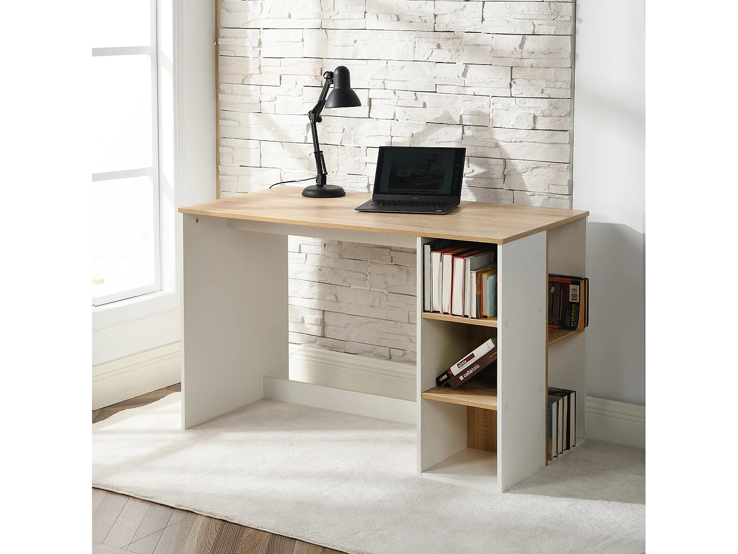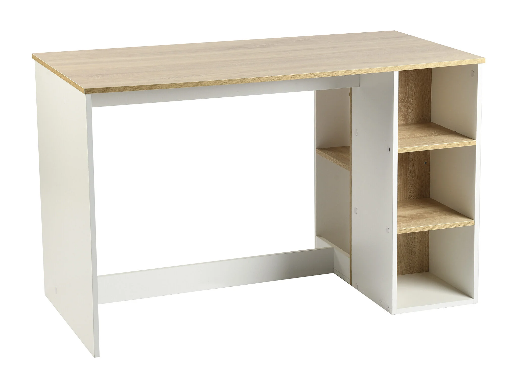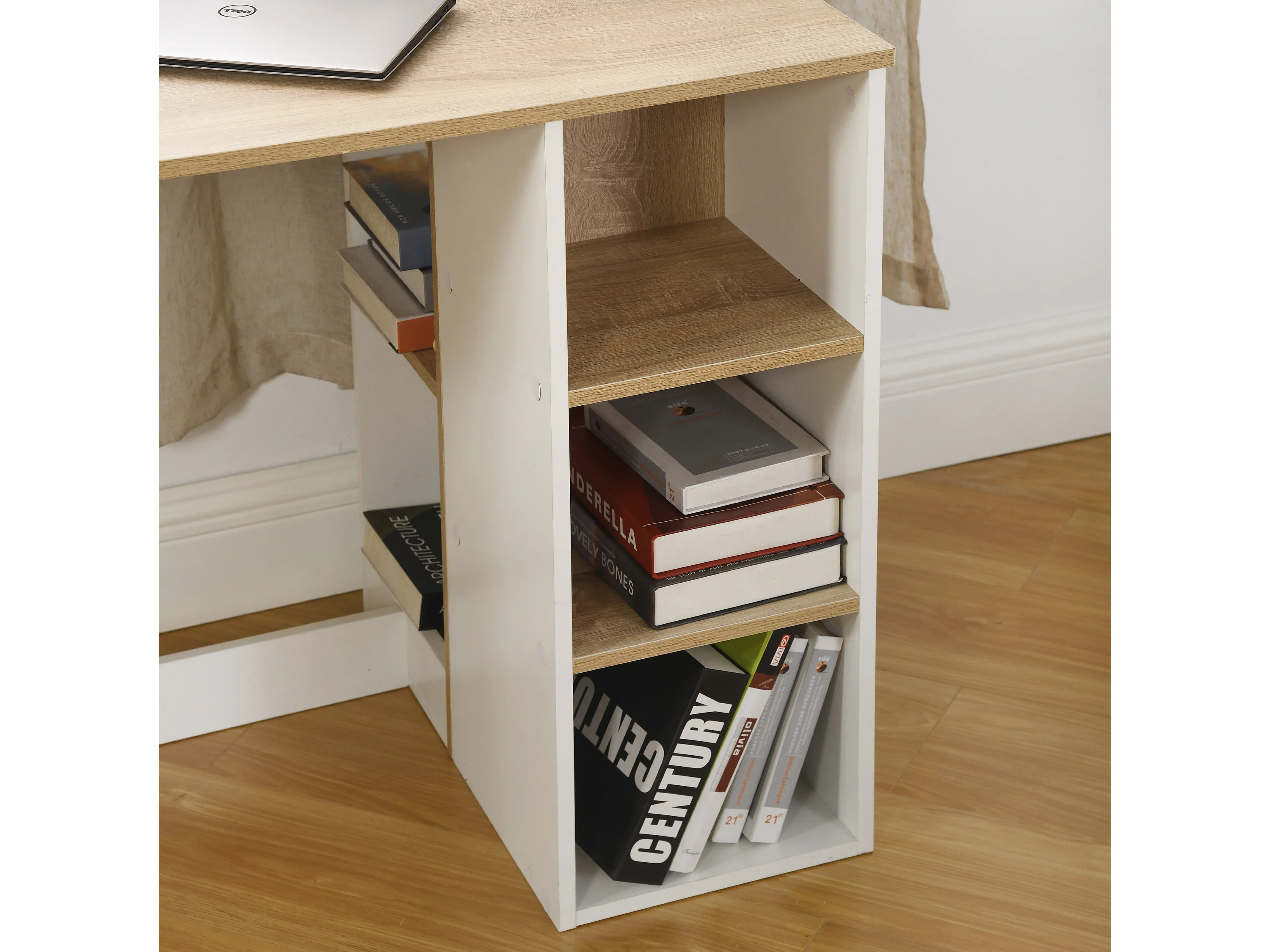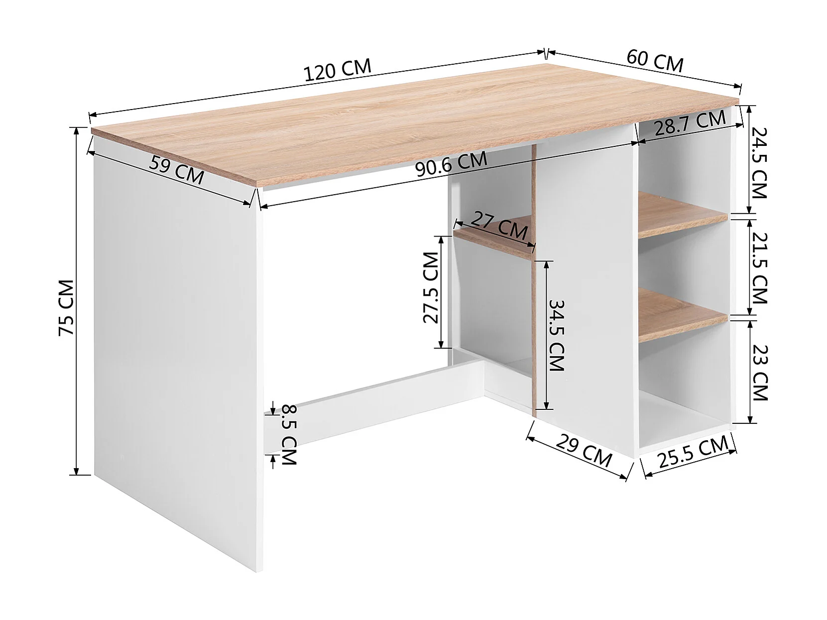 Escritorio de estudio para adolescentes, Escritorio de oficina con 3 estantes, Blanco y Roble, 120 x 60 x 75cm