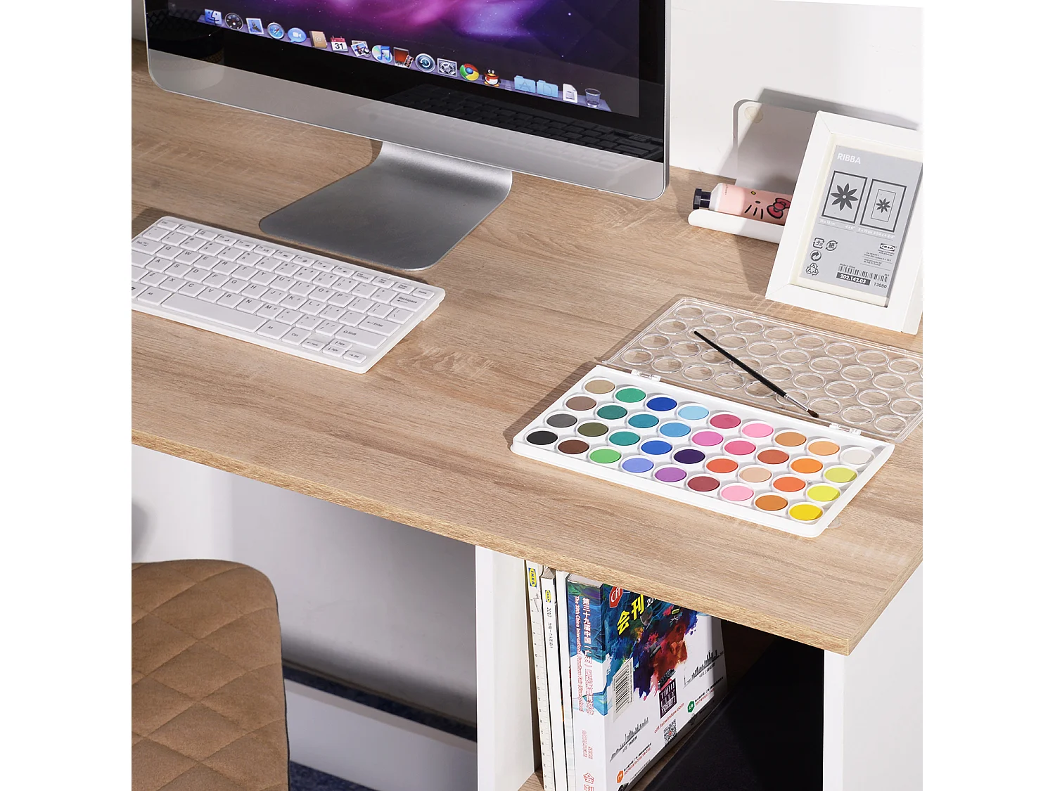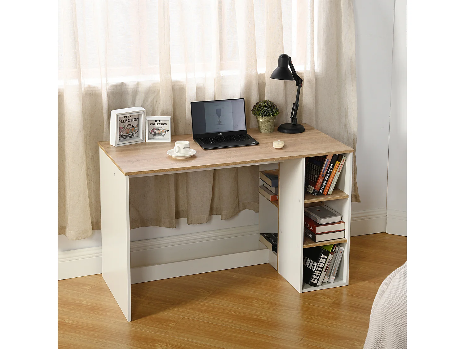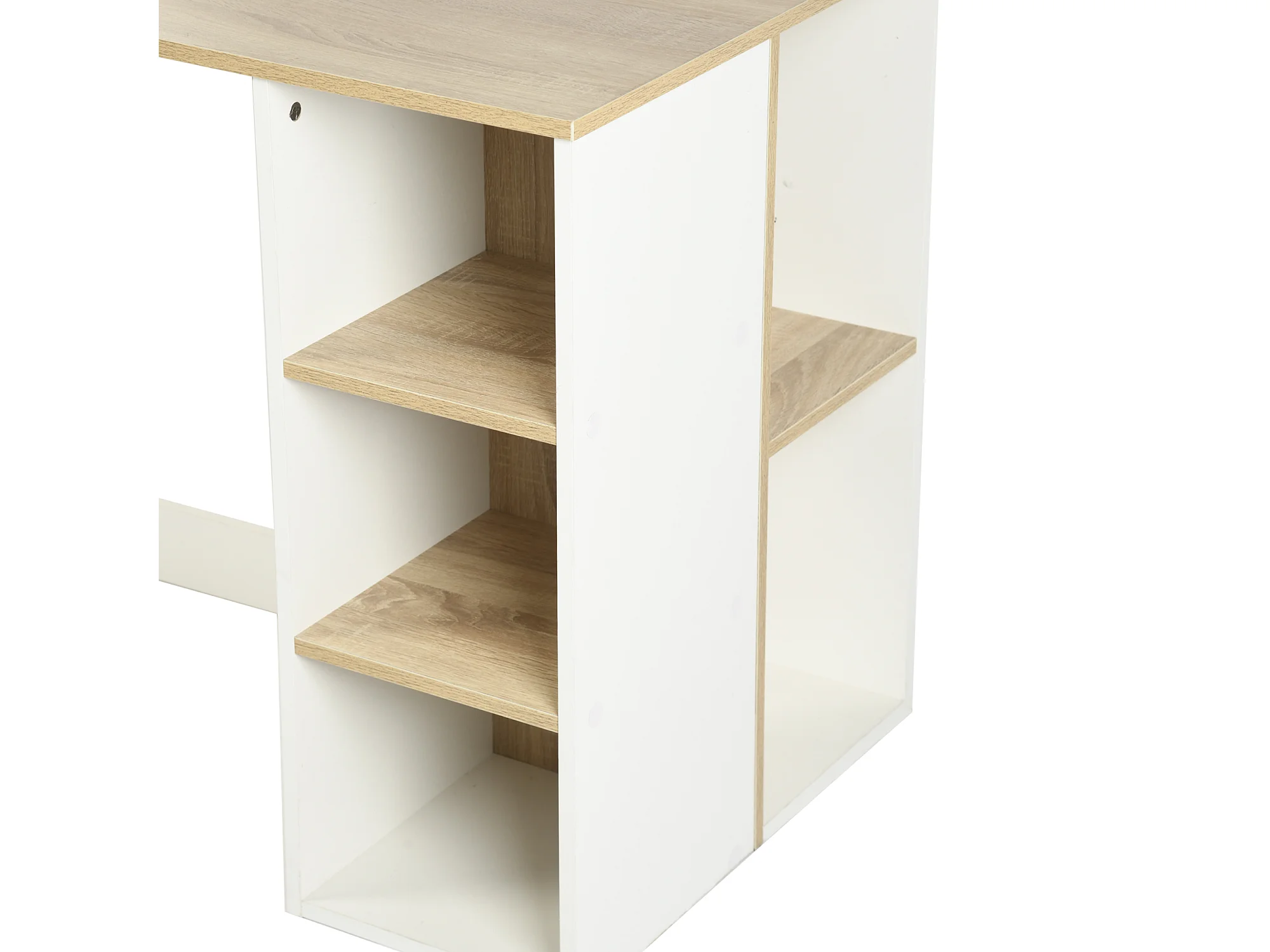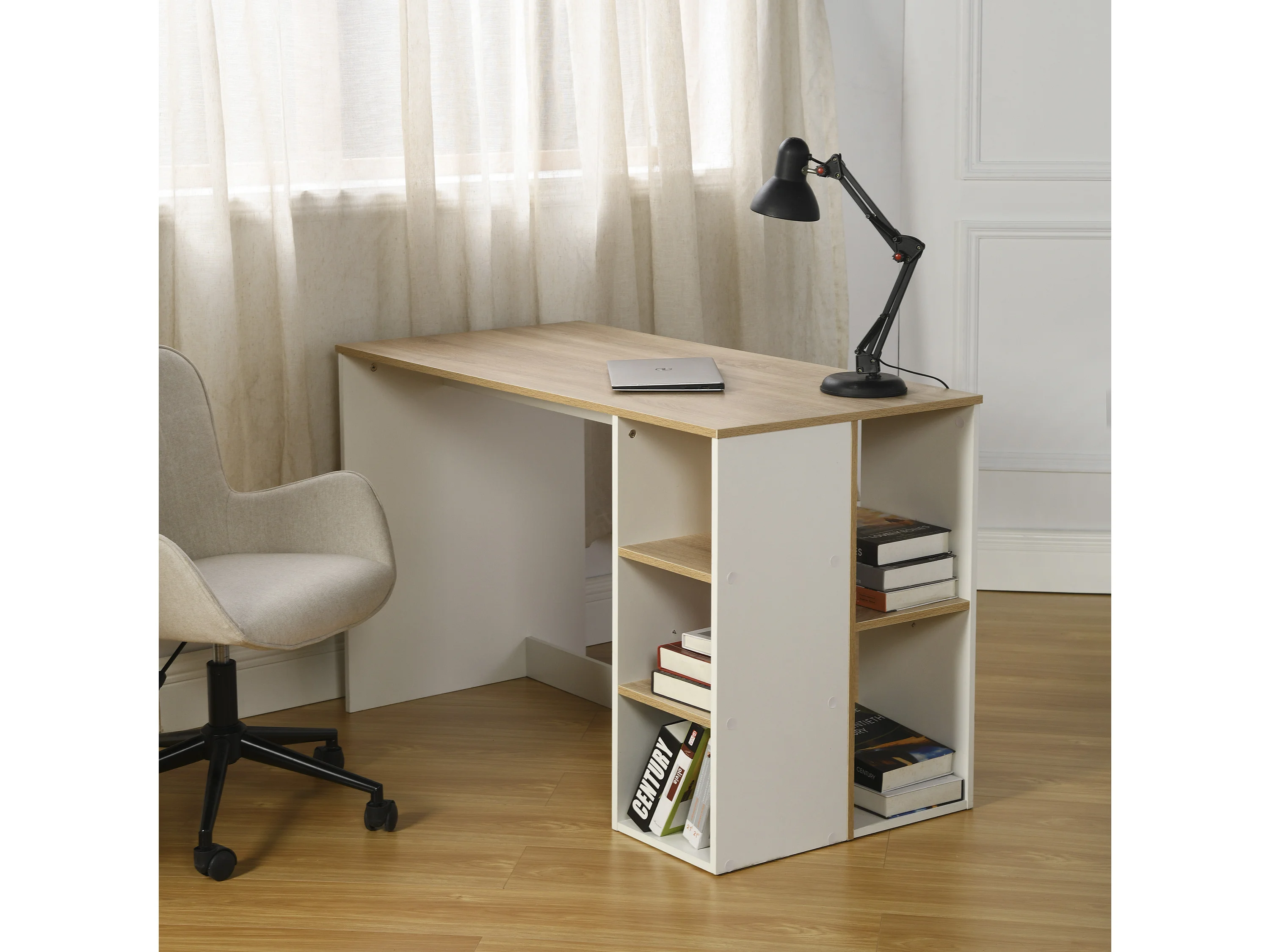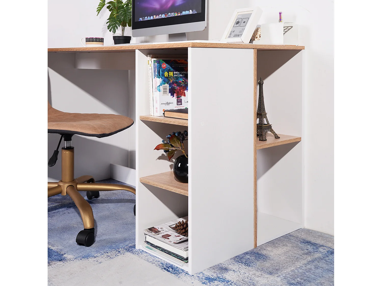Escritorio de estudio para adolescentes, Escritorio de oficina con 3 estantes, Blanco y Roble, 120 x 60 x 75cm
