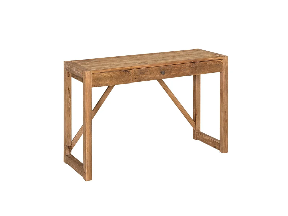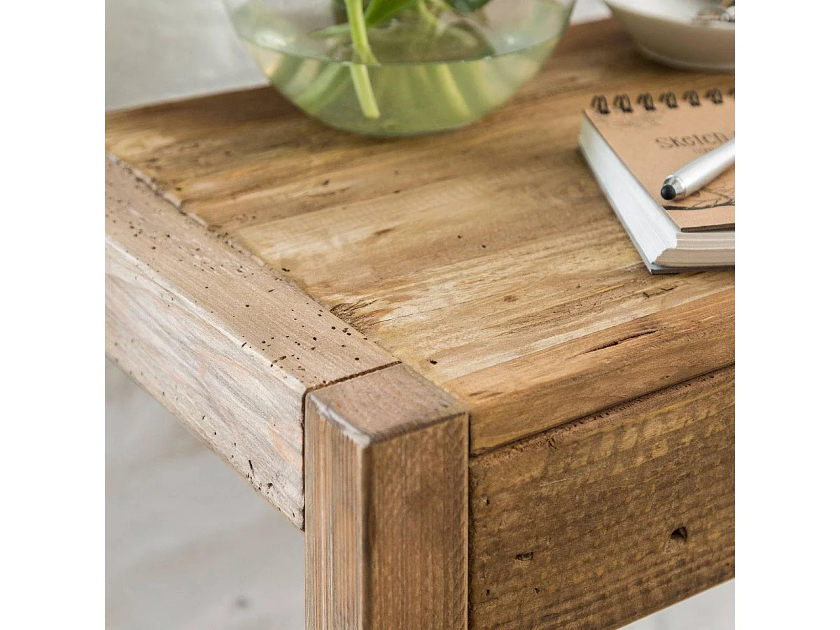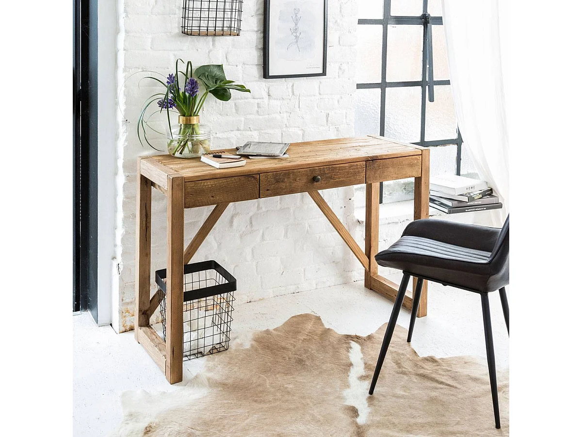 Escritorio de madera reciclada Blaise con cajón central y aspecto rústico
