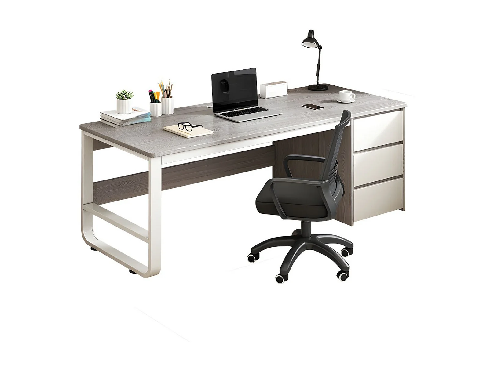 Escritorio de Oficina con 3 Cajones, MDF Gris y Blanco, 120x48x74cm - Moderno y Funcional
