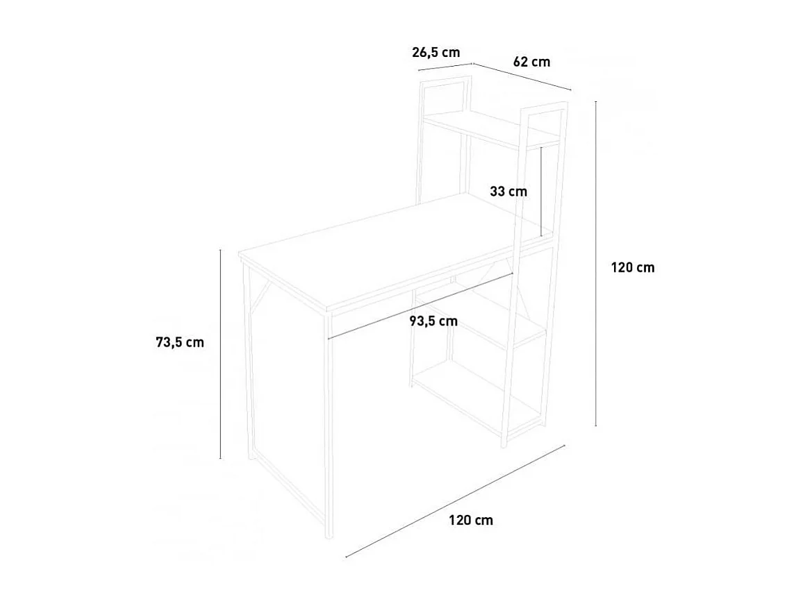 Escritorio con estantería de acero y madera 120x60 Empire diseño minimalista