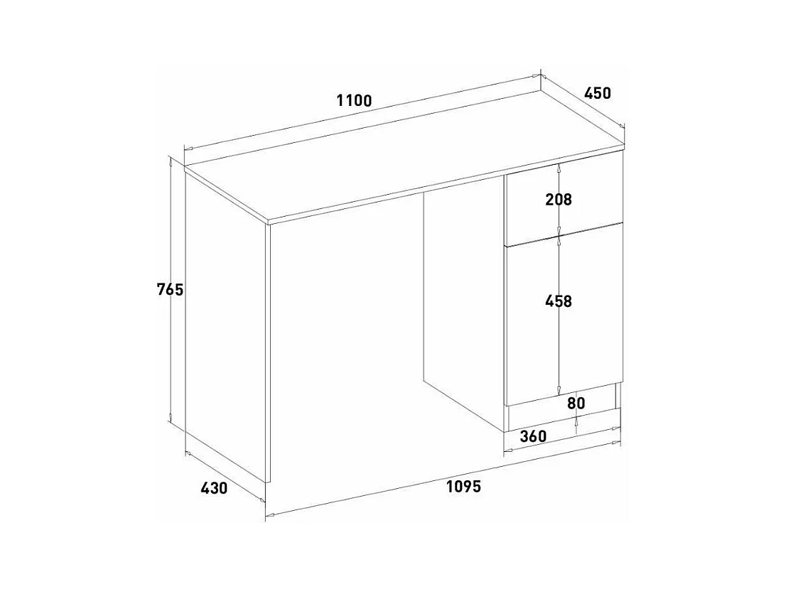 Escritorio de oficina moderno que ocupa poco espacio con puerta y cajón 110x45x77 cm Lythes Light