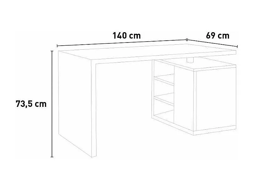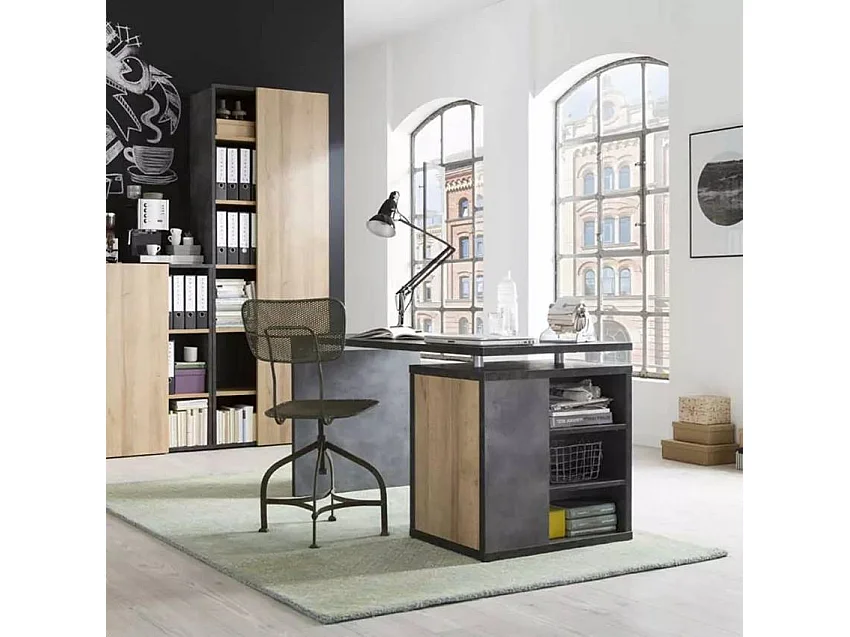 Escritorio de Oficina y Despacho de Madera Con Compartimentos Y Hoja Gris y Roble 140x69cm