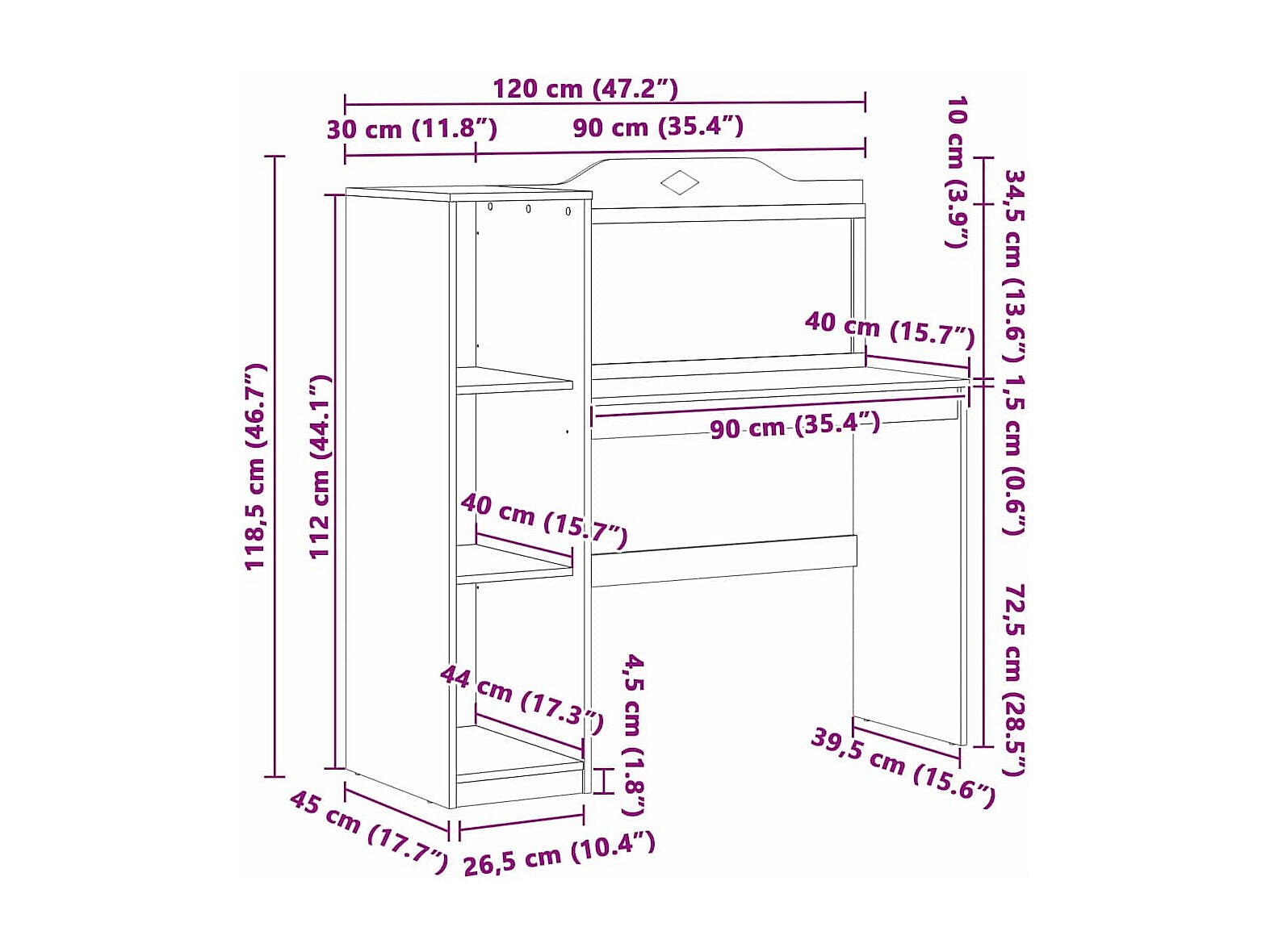 Escritorio de pizarra y gris 120 x 45 x 118.5 cm