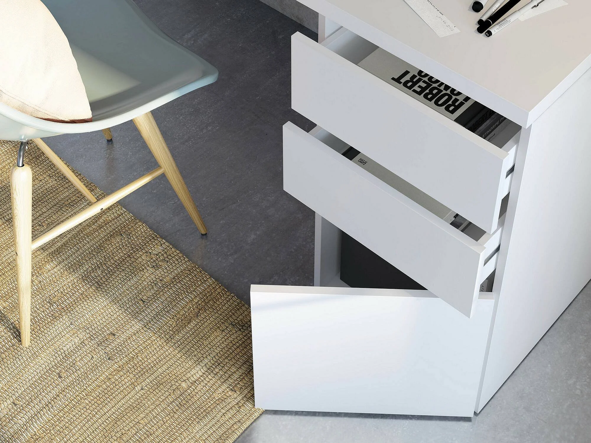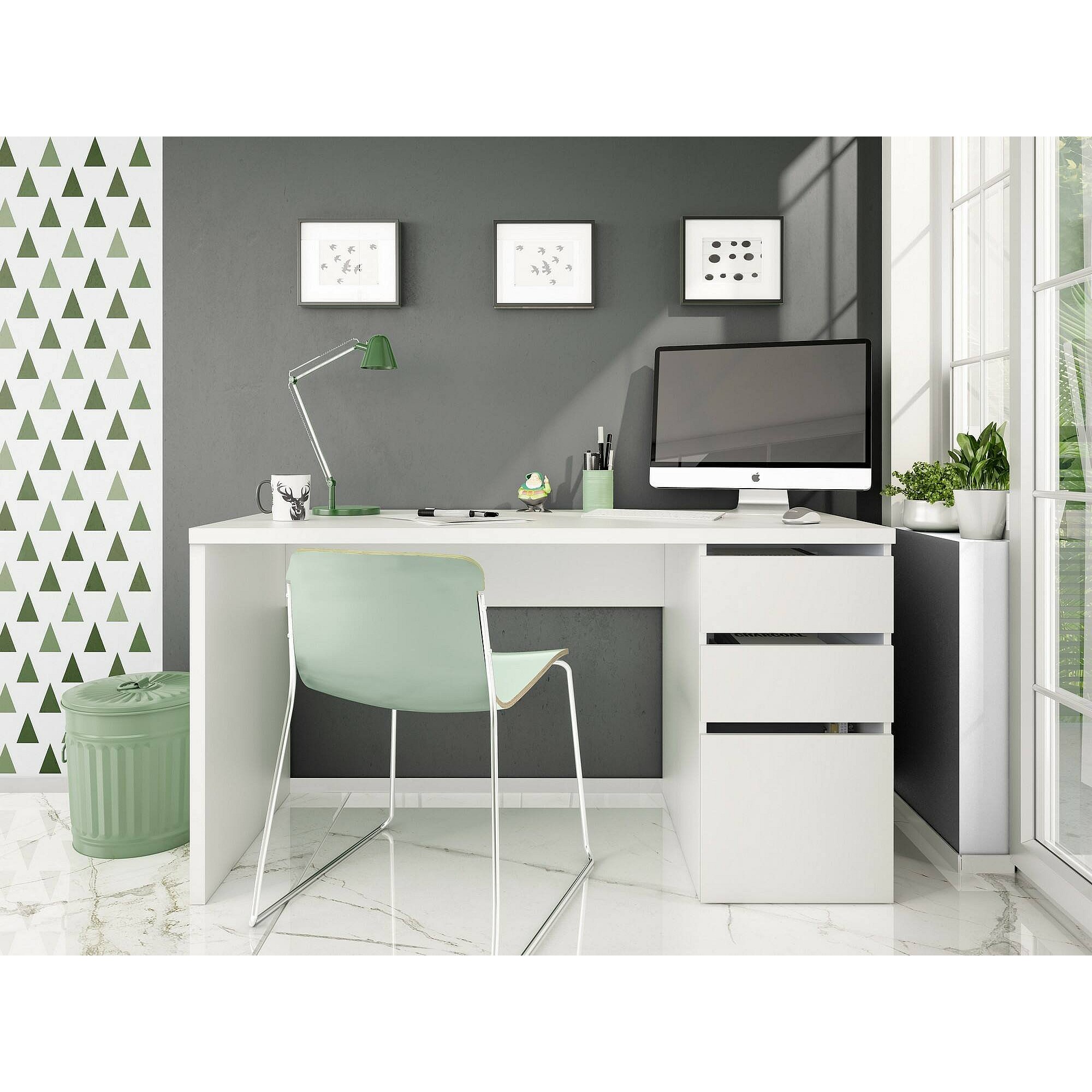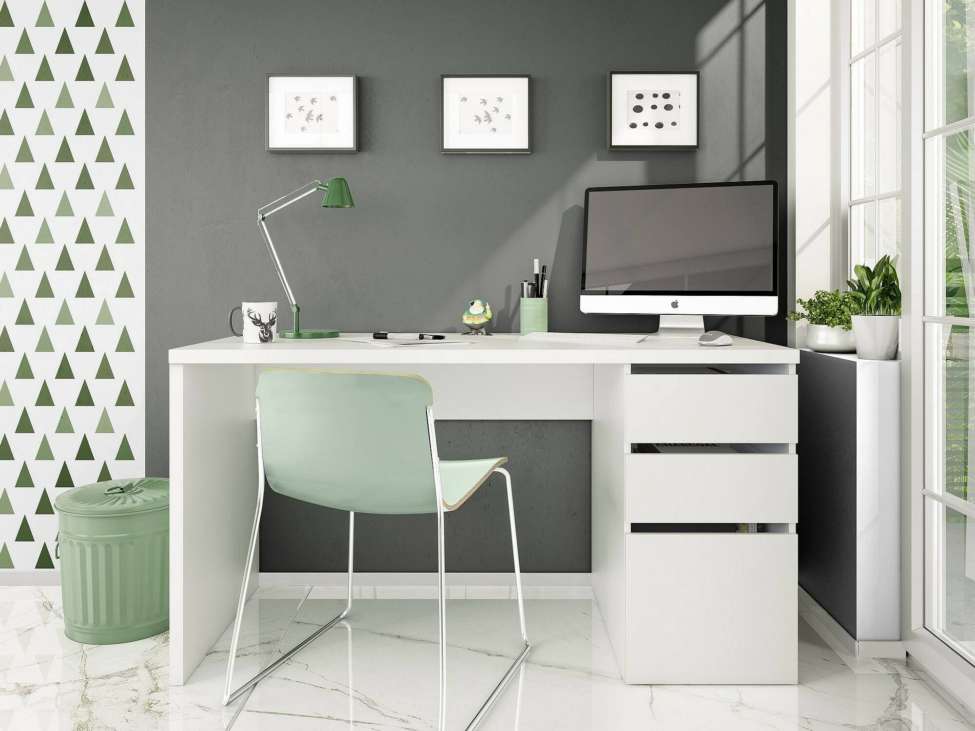 Escritorio Dmallam, Escritorio reversible con 3 cajones, Mesa de oficina multiposiciones para ahorrar espacio, 138x60h74 cm, Blanco