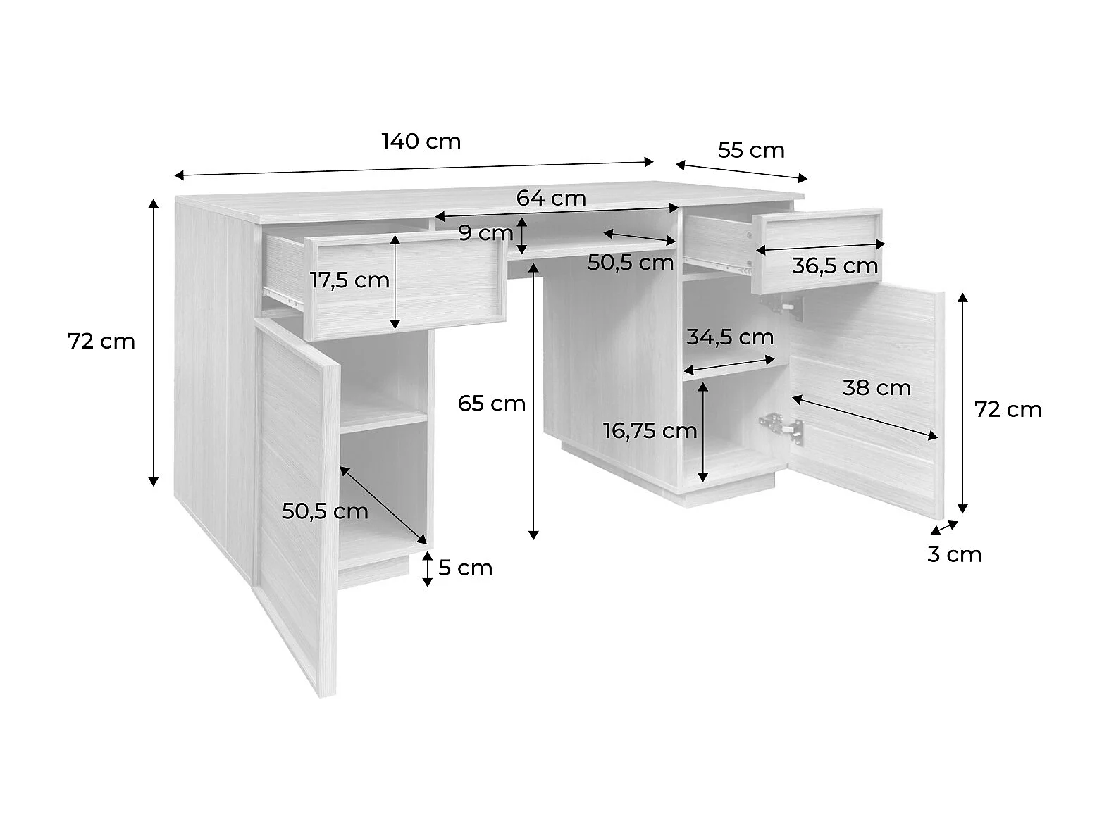 Escritorio efecto madera con 2 puertas y 2 cajones, 140cm natural