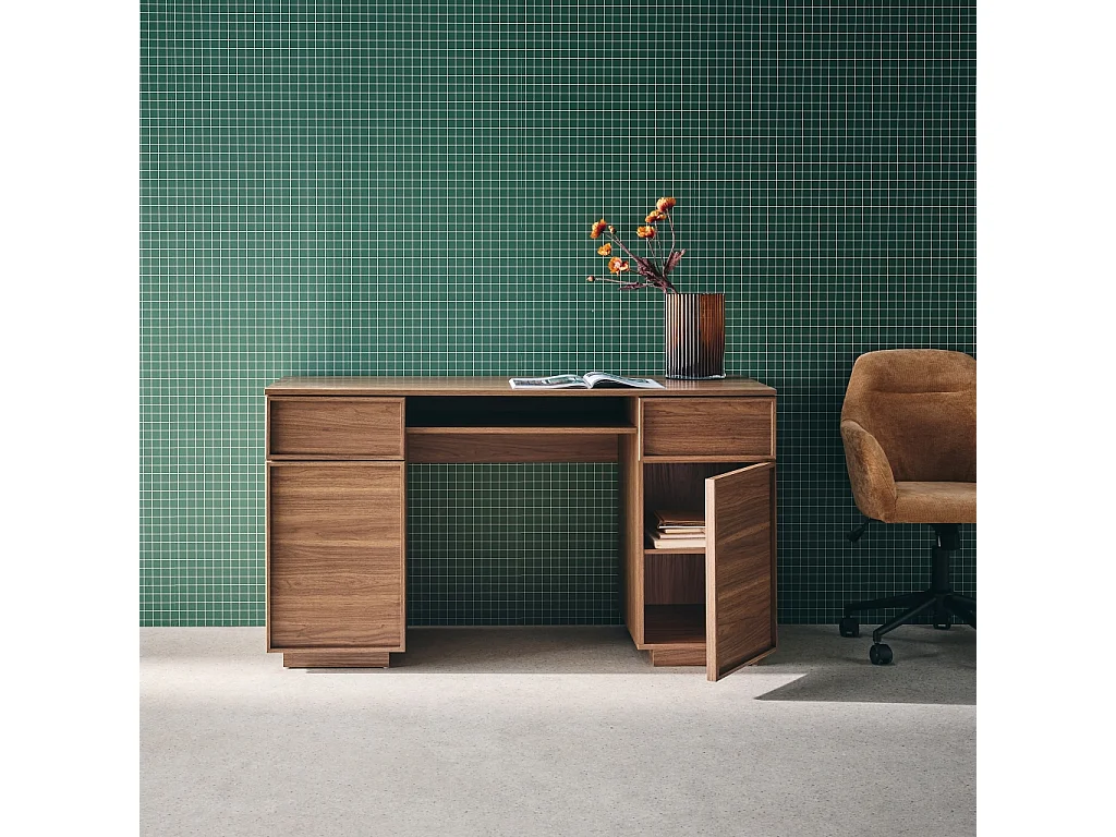 Escritorio efecto madera con 2 puertas y 2 cajones, 140cm nogal