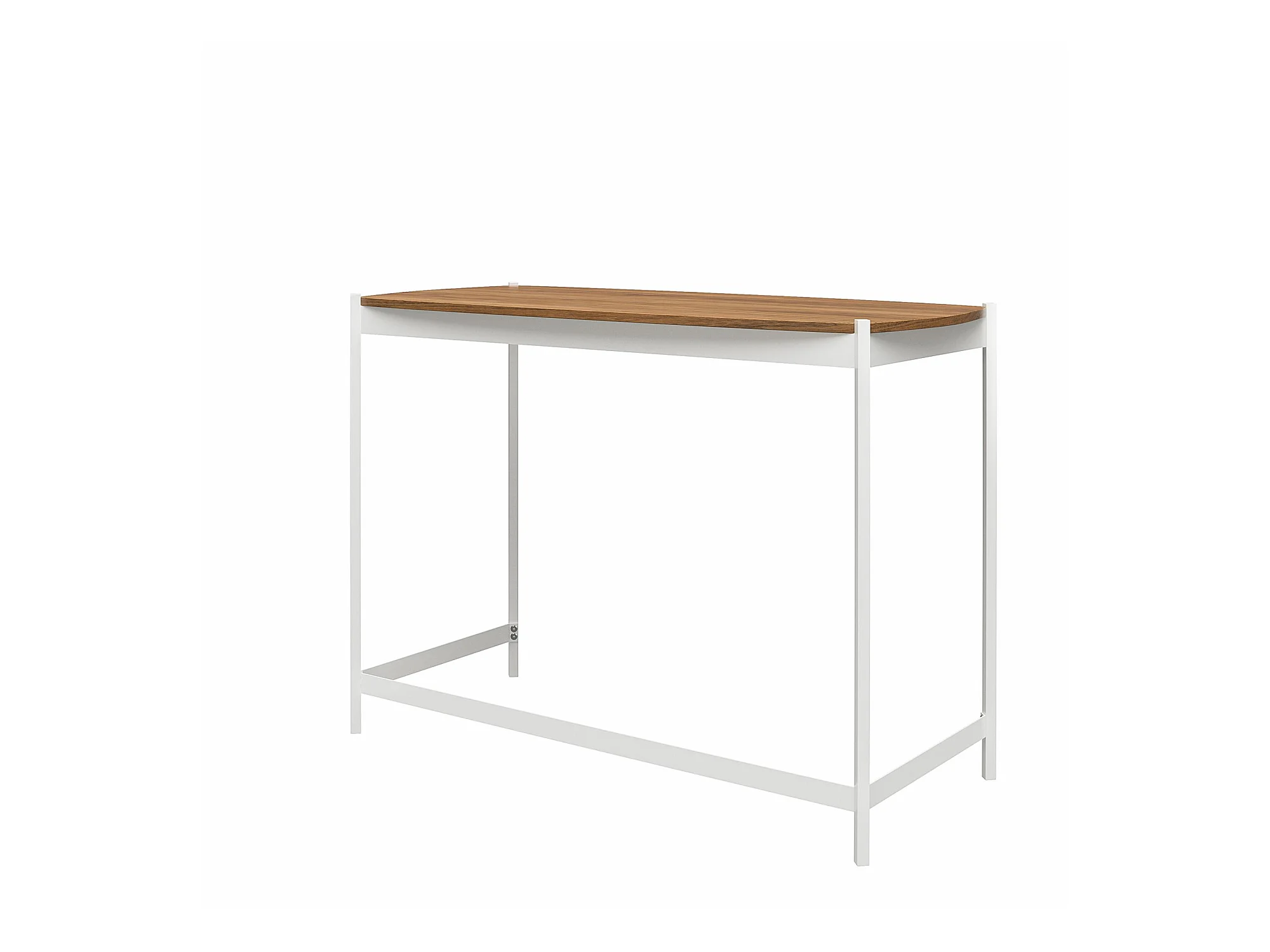 Escritorio en aglomerado laminado nogal y estructura en metal blanco