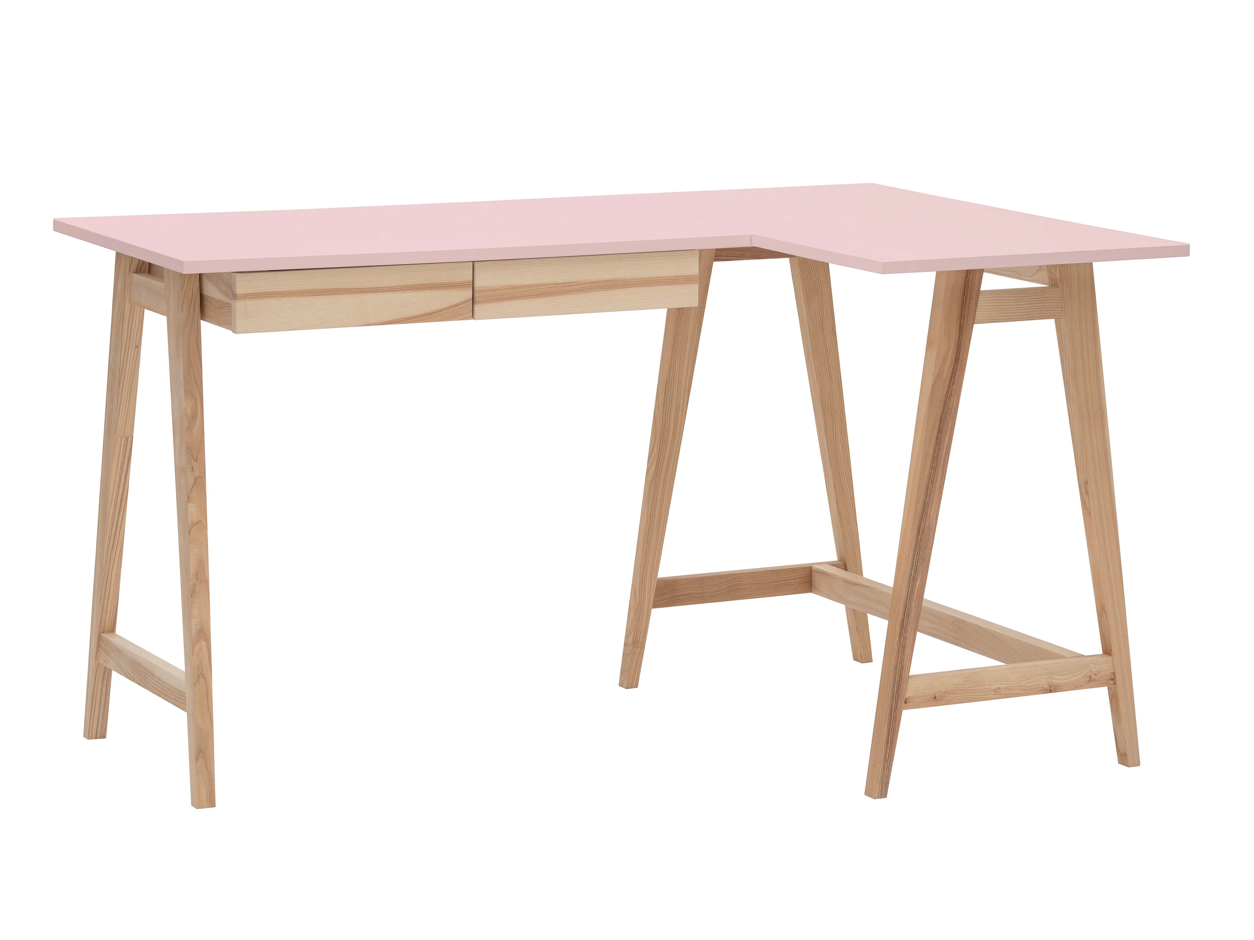 Escritorio esquinero con 2 cajones 135x85cm Luka Rosa Polvo | Patas de fresno | Lado derecho