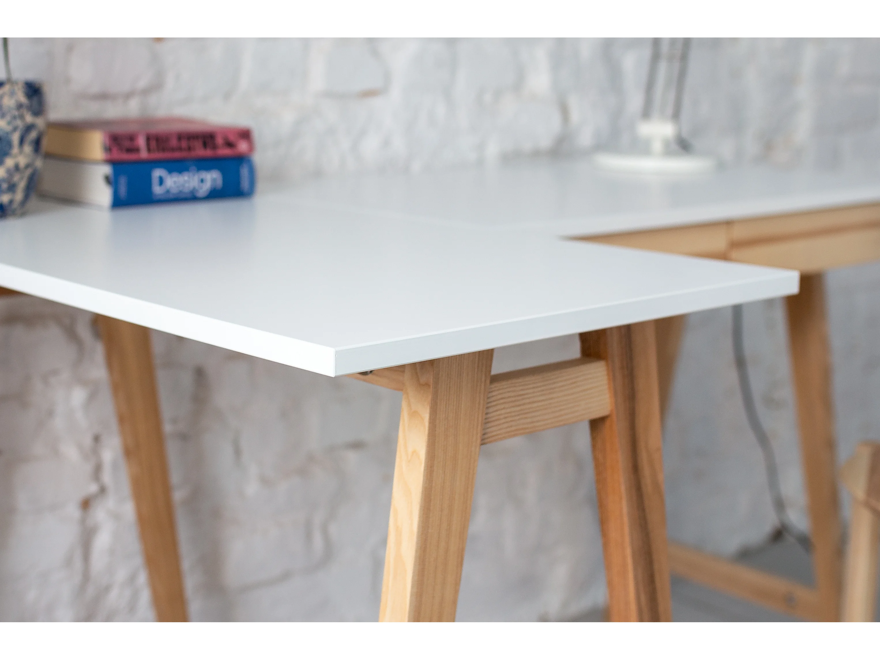 Escritorio esquinero con cajón 115x85cm Luka Rosa Antiguo | Patas de fresno | Lado izquierdo