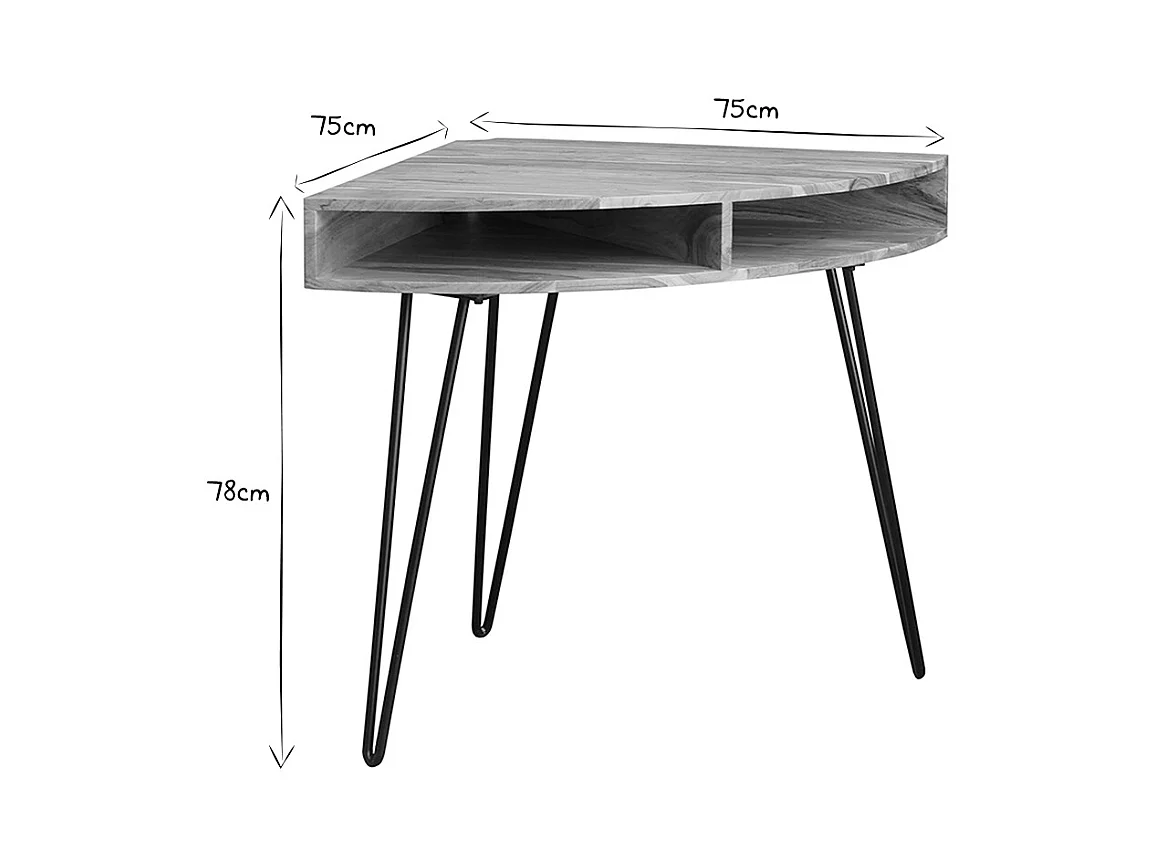Escritorio esquinero de acacia maciza y metal negro GOSBY