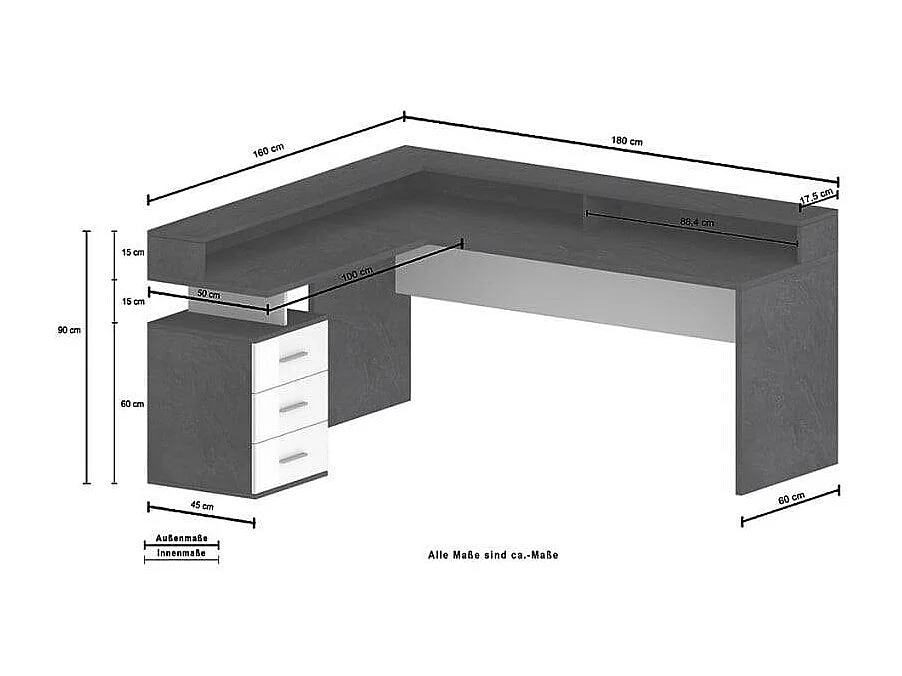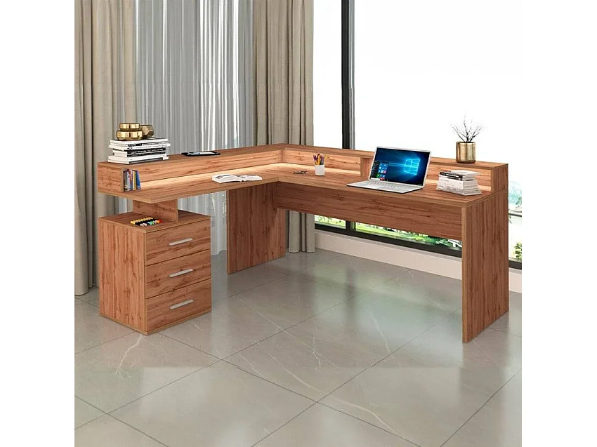 Escritorio esquinero de oficina con 3 cajones estante New Selina A-S Plus - Roble