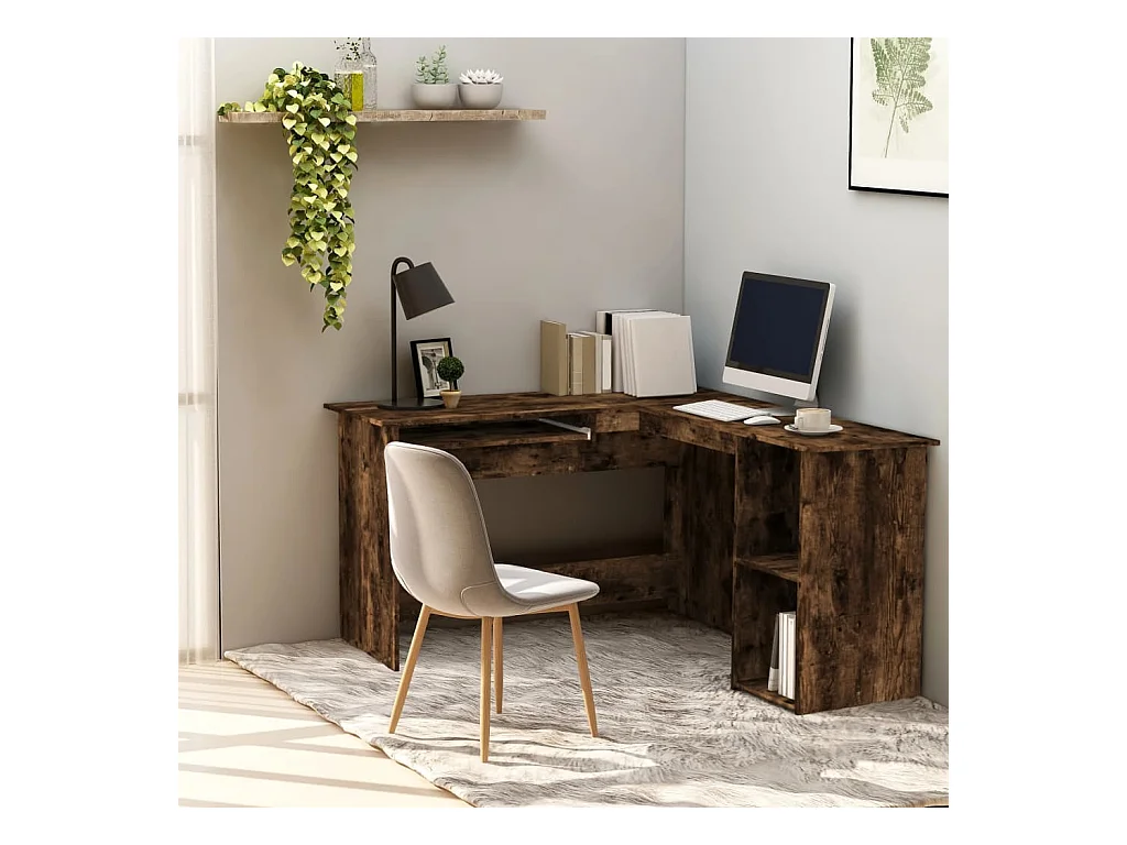 Escritorio esquinero de roble ahumado 120x140x75 cm madera de ingeniería
