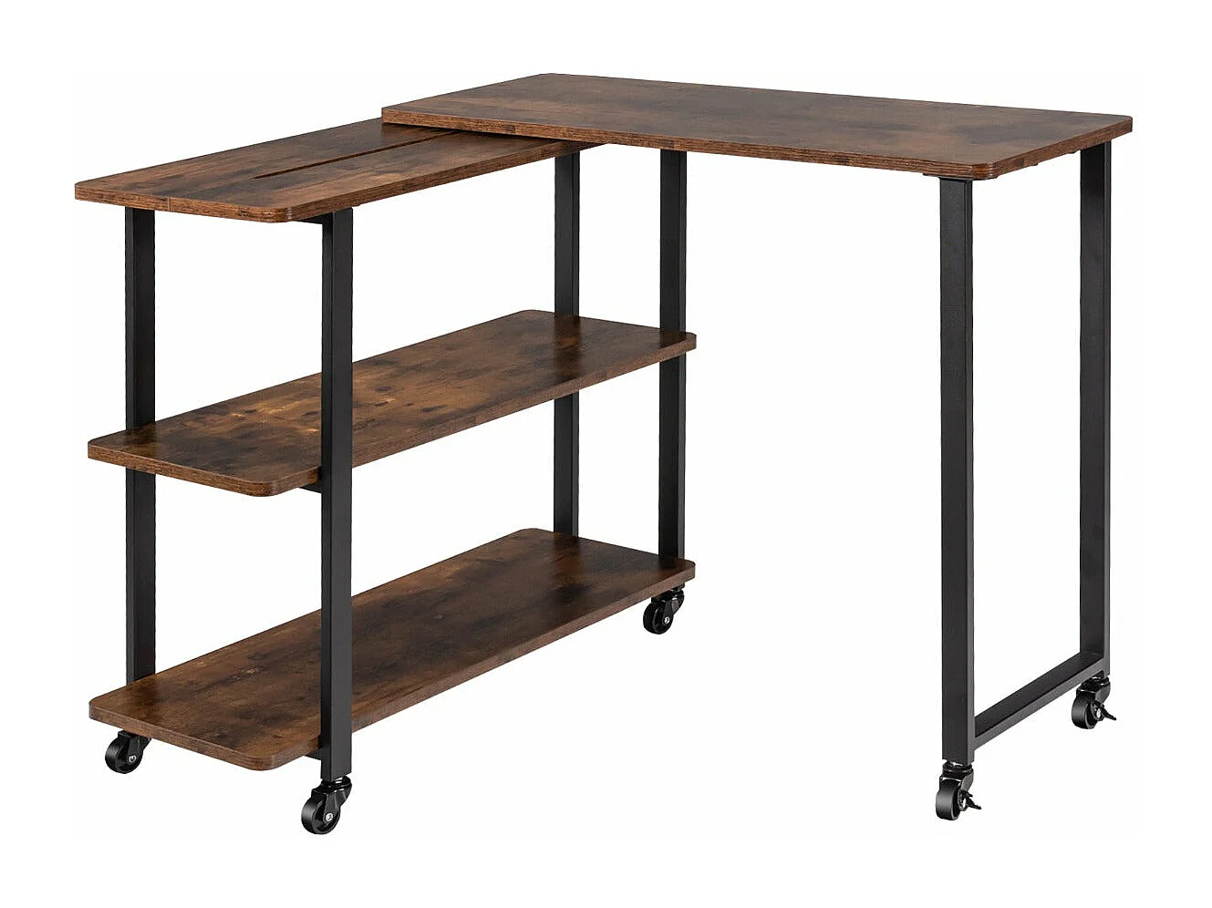 Escritorio esquinero para computadora con ruedas Escritorio en forma de L con 3 estantes Marco de metal Café 20_0004828