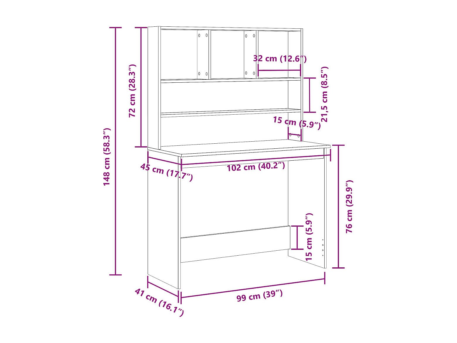 Escritorio estantes madera ingeniería envejecida 102x45x148 cm