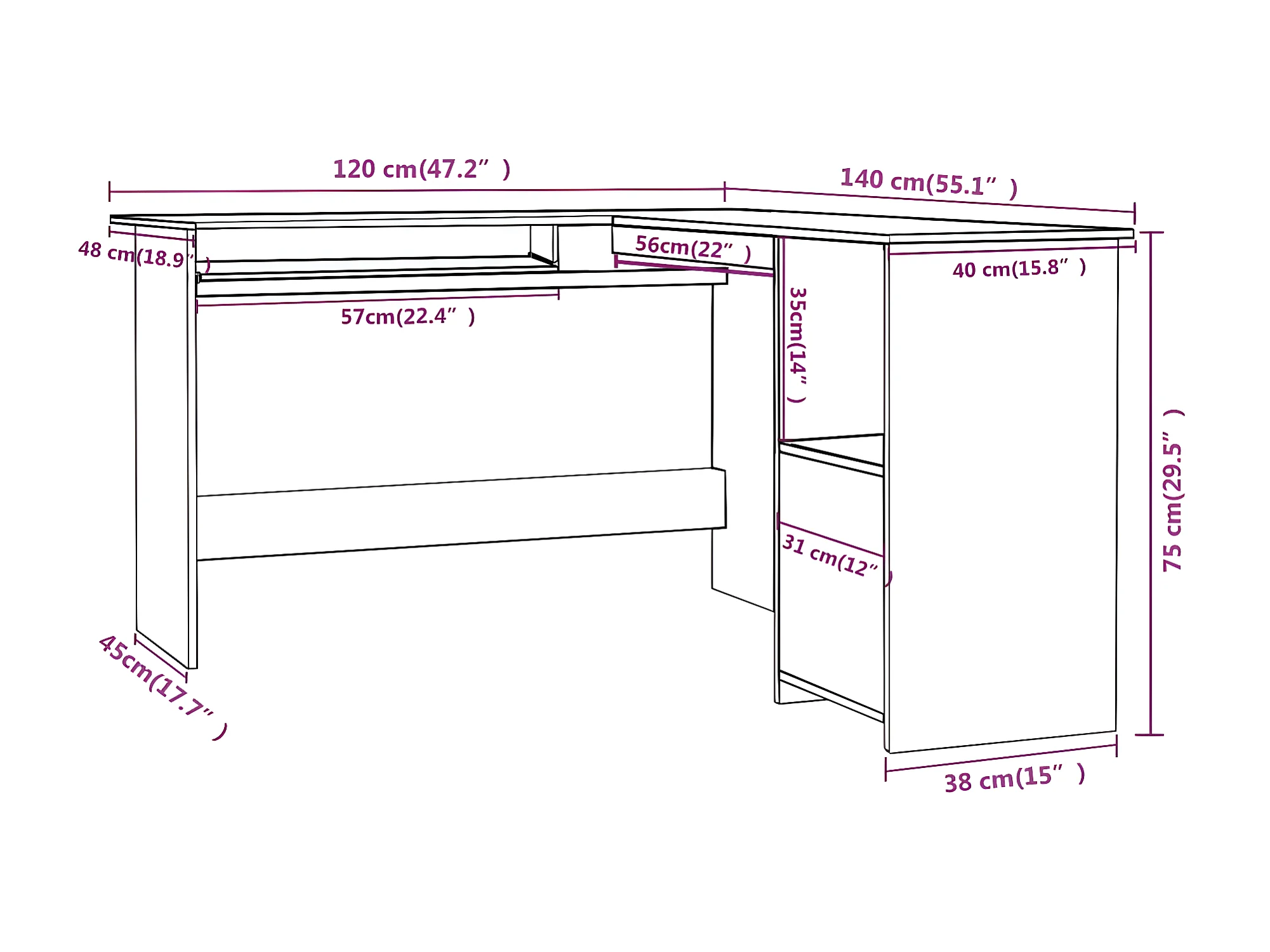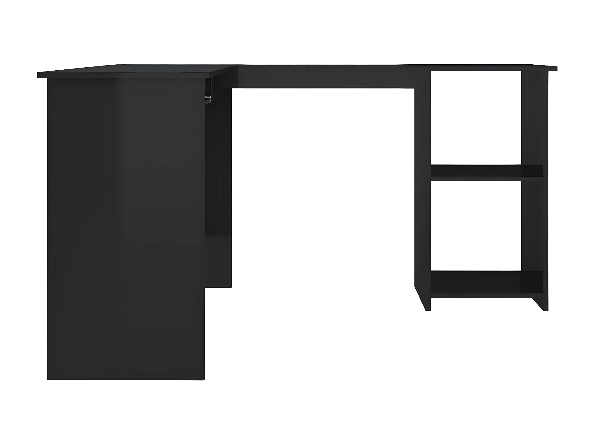 Escritorio forma de L contrachapada negro brillo 120x140x75 cm