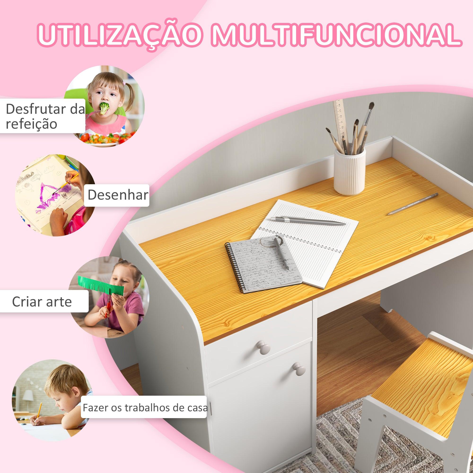 Renueva el espacio de los más pequeños con este precioso y práctico escritorio infantil modelo Miel de Zonekiz. Este escritorio y silla han sido diseñados pensando en niños de 3 a 6 años, proporcionando el lugar ideal para que puedan desarrollar su creatividad, ya sea dibujando o estudiando. El escritorio incluye un práctico cajón y armario que permite guardar materiales de manera ordenada, mientras que la silla con respaldo asegura comodidad durante su uso. La estructura está fabricada con MDF resistente, garantizando durabilidad, y sus bordes redondeados proporcionan seguridad para evitar accidentes.