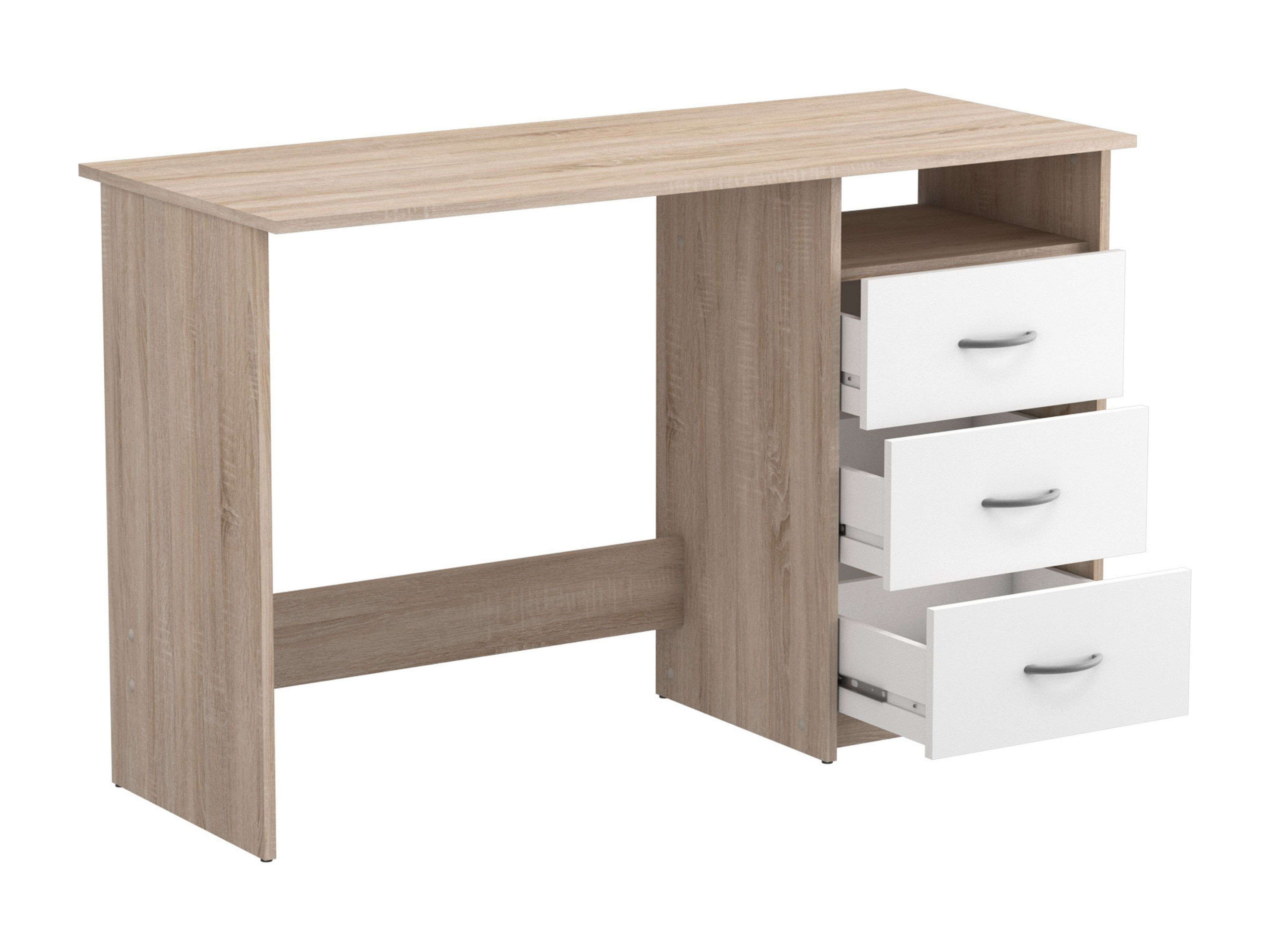 Escritorio Juvenil c/Cajones y Hueco Roble/Blanco 123 cm