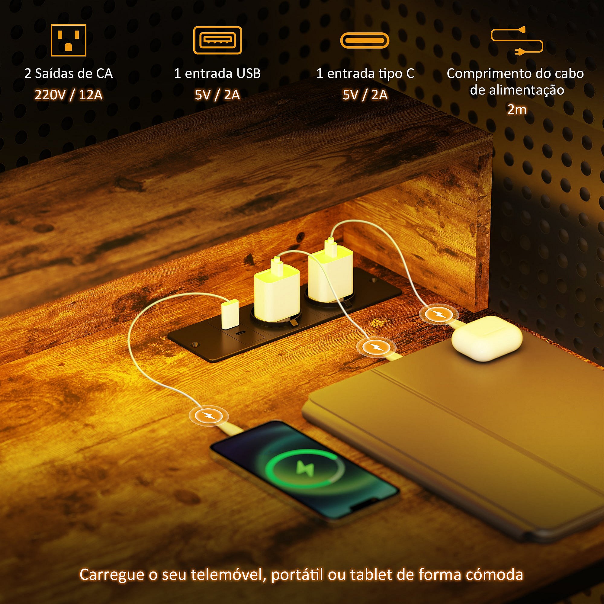 Dale a tu espacio de trabajo o gaming un giro moderno con Karlen Homcom, un escritorio con estilo industrial y funcionalidades avanzadas que elevan tu productividad y confort. Su superficie espaciosa en acabado madera rústica está complementada con un soporte elevado para monitor, ideal para pantallas de hasta 27", lo que te permite mantener una postura ergonómica durante largas jornadas. Incluye luces LED RGB con 16 colores y 4 modos de iluminación, controlables por mando a distancia, que aportan una atmósfera personalizada y envolvente. ¿Necesitas tener tus dispositivos siempre a punto? Este escritorio integra una estación de carga con dos enchufes, un puerto USB y otro USB-C para conectarlo todo sin complicaciones. Su estructura de acero con recubrimiento en polvo proporciona máxima estabilidad y durabilidad, mientras que los pies ajustables garantizan un apoyo firme incluso en suelos irregulares. Moderno, funcional y visualmente impactante: Karlen Homcom es mucho más que una mesa, es tu nueva zona de control.