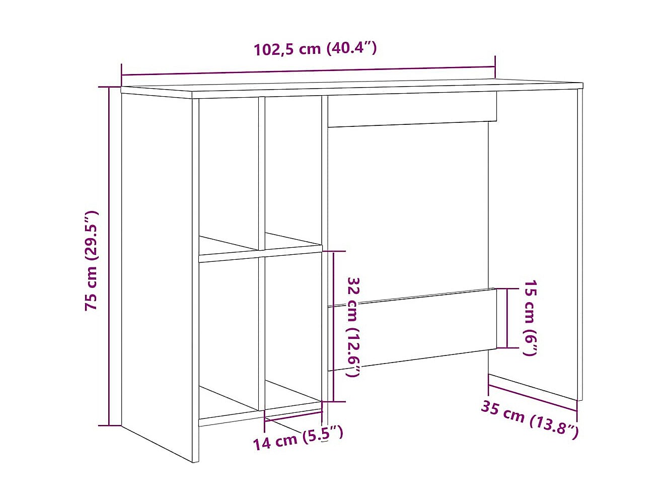 Escritorio madera ingeniería madera envejecida 102,5x35x75 cm