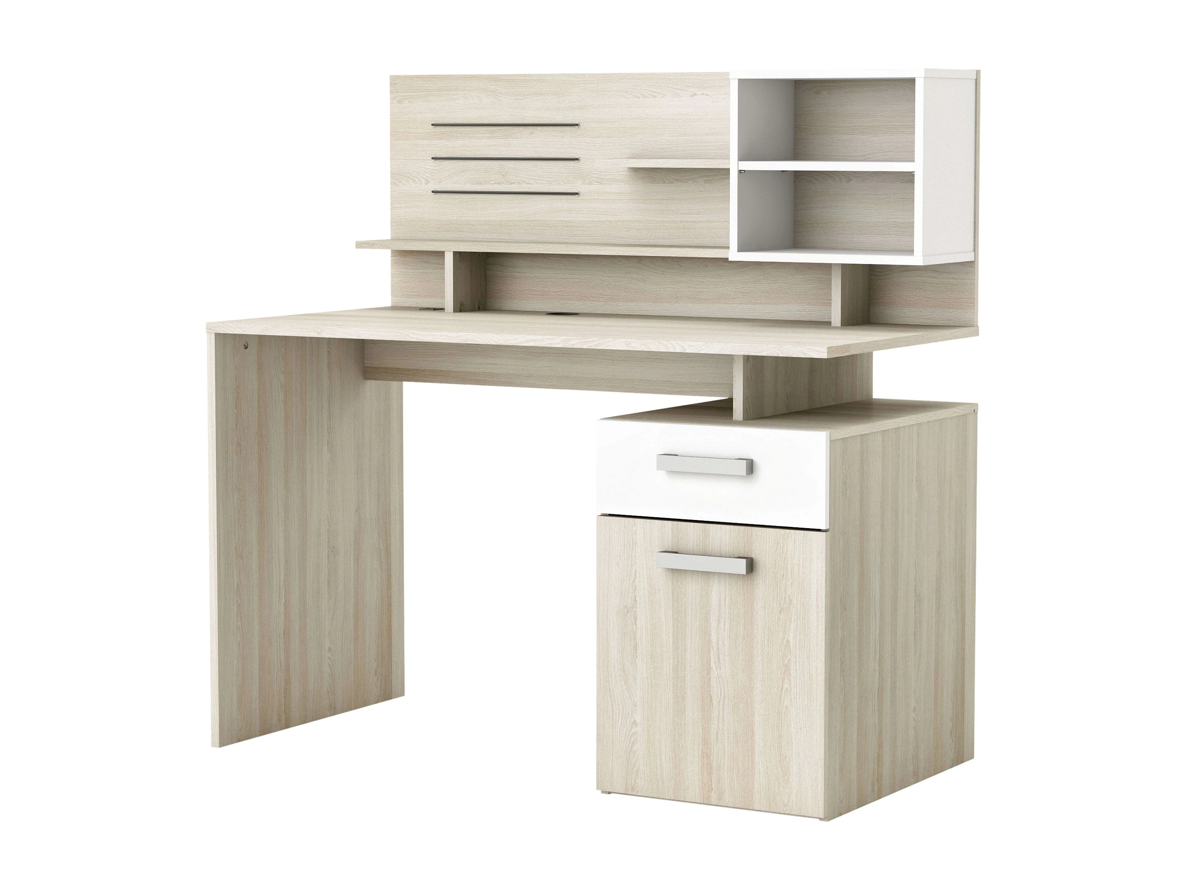 Escritorio Malicia Altillo y Cajón Roble Blanco Mate 122x123x60 cm