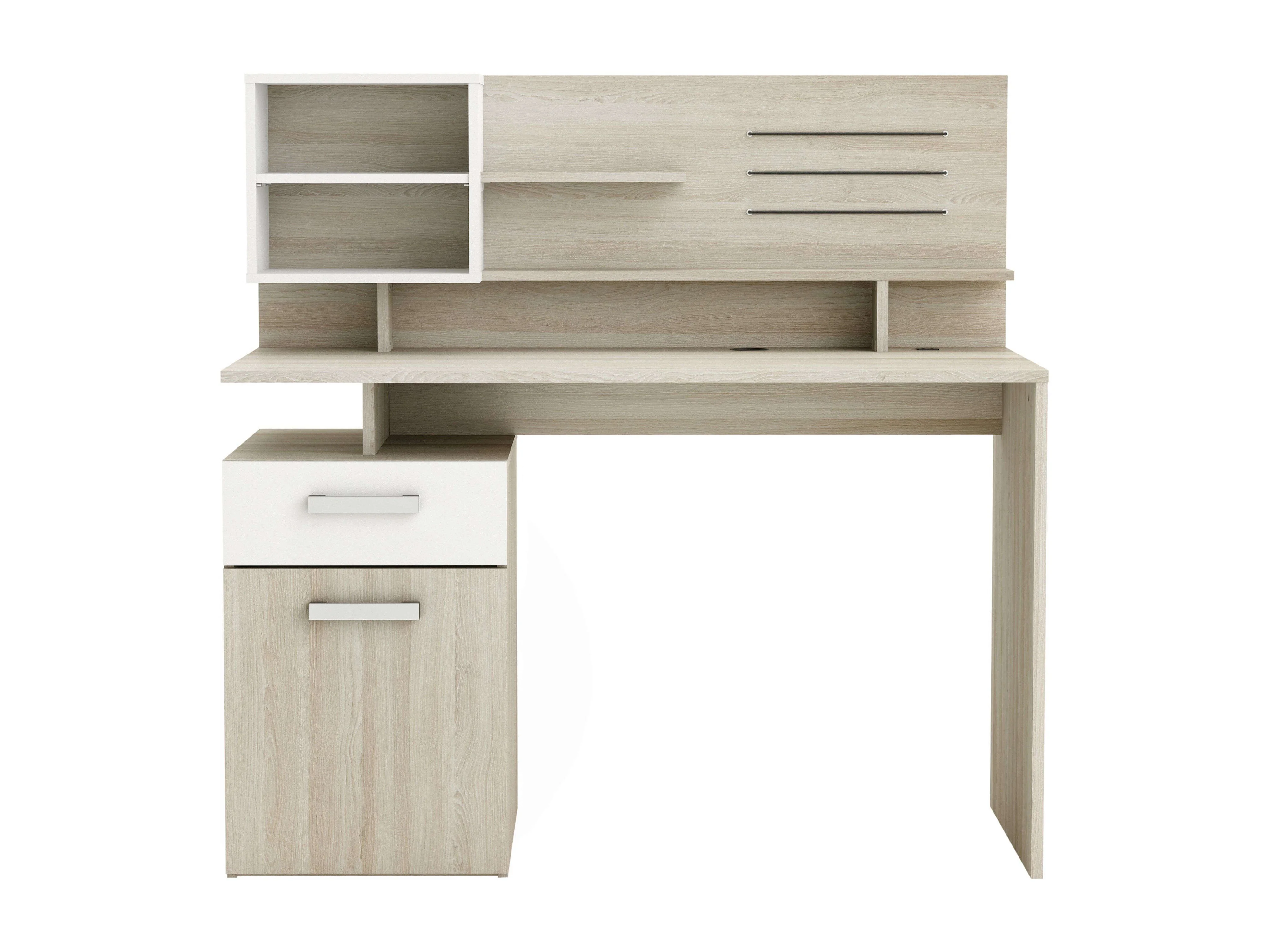 Mesa de Ordenador Escritorio con altillo 135cm. Blanco y Roble