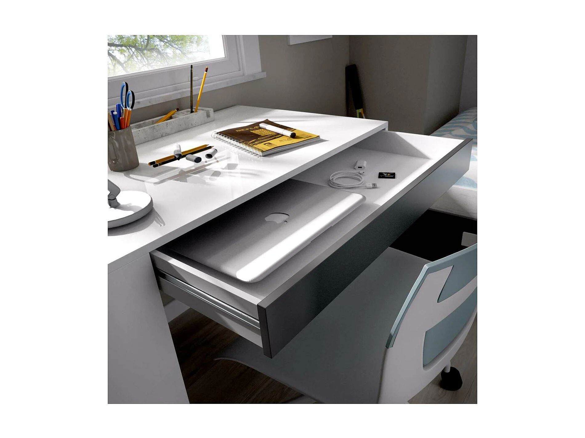 Escritorio Navas con estante y 1 cajon en blanco-grafito 74 cm(alto)115 cm(ancho)50 cm(fon