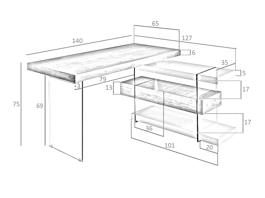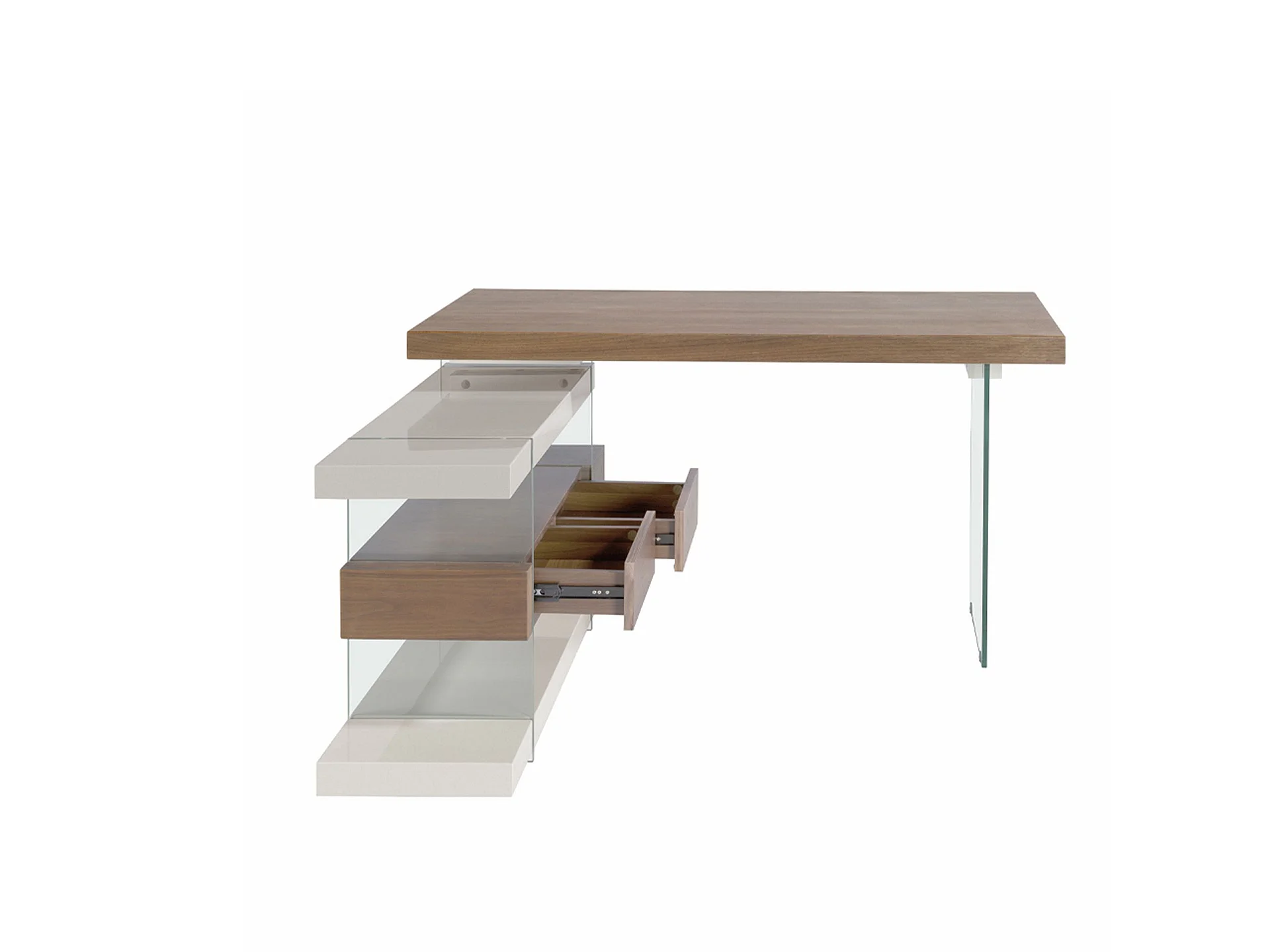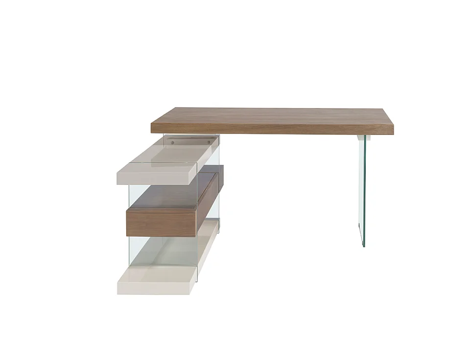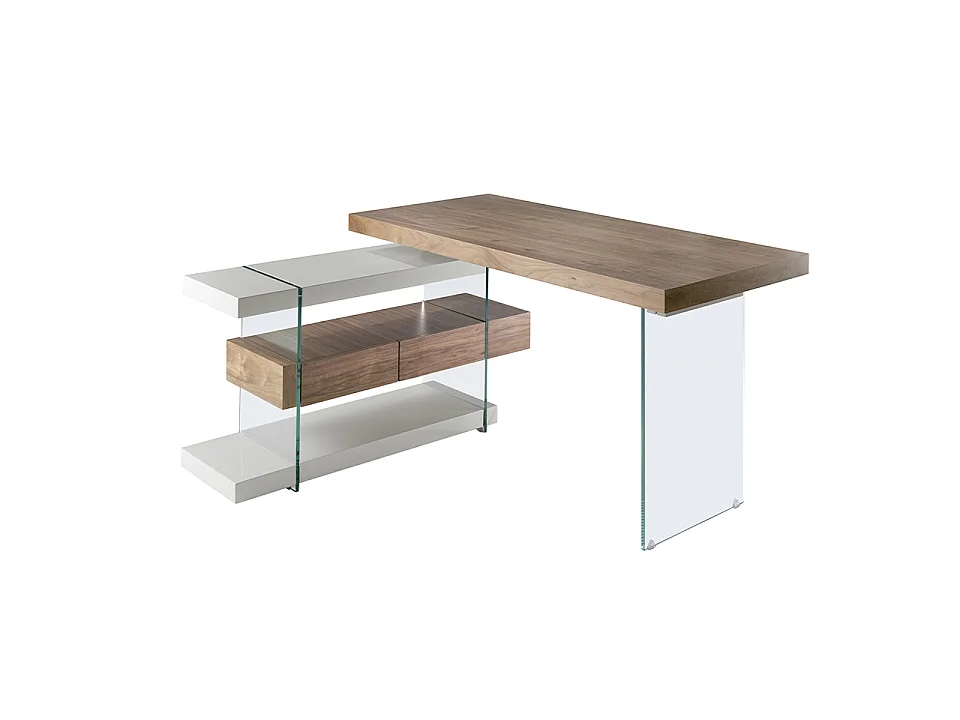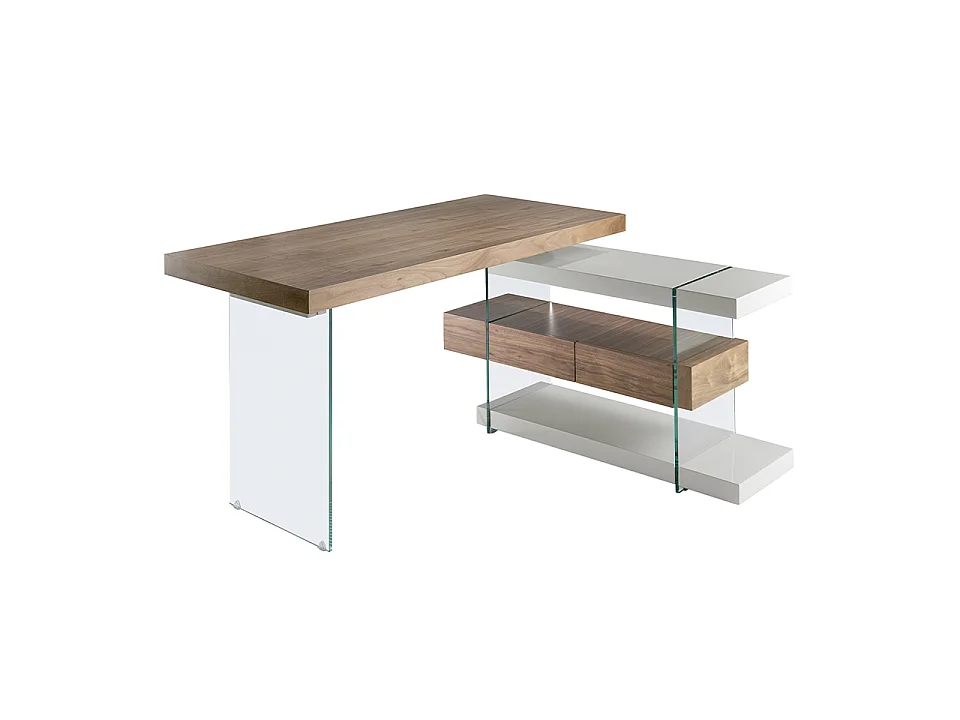 Escritorio madera gris y cristal templado con tapa de nogal 3003 ANGEL CERDA