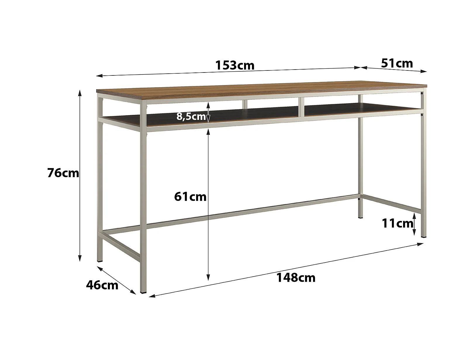 Mesa de ordenador en aglomerado de roble y estructura de metal