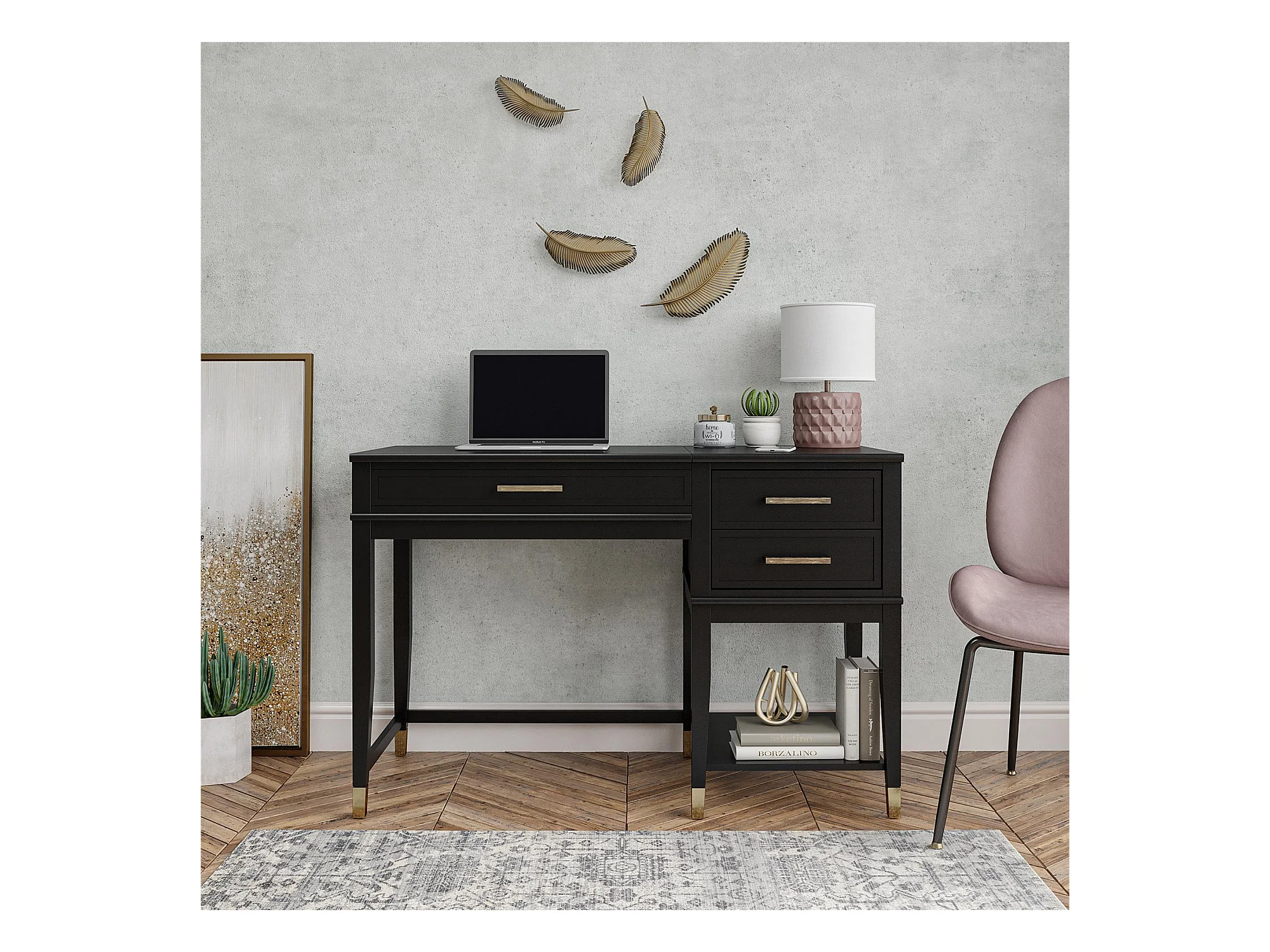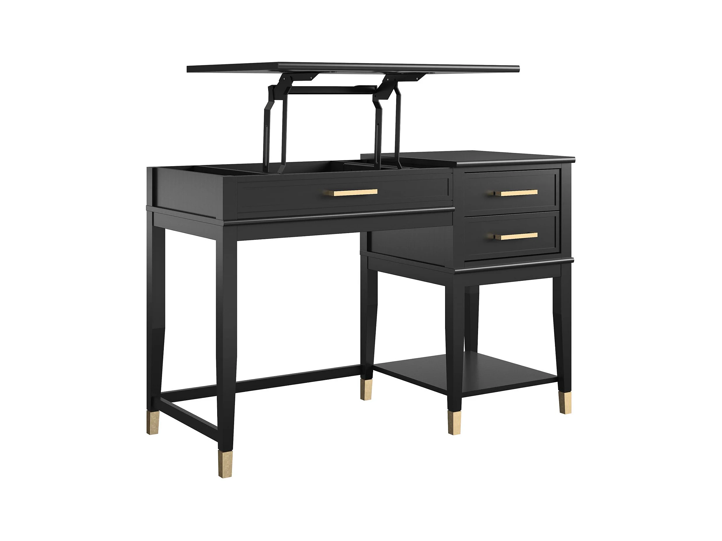 Escritorio compacto de ordenador con bandeja de teclado negro