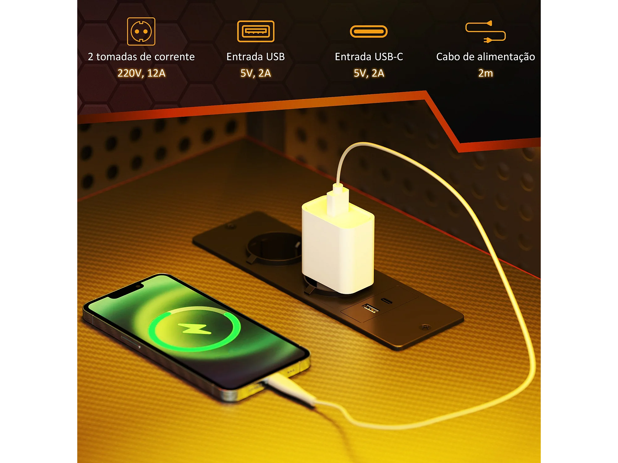 Escritorio Plus Homcom 3 estantes + estación de carga + luz LED negro/rojo 113x110x50 cm