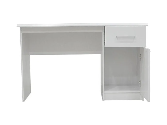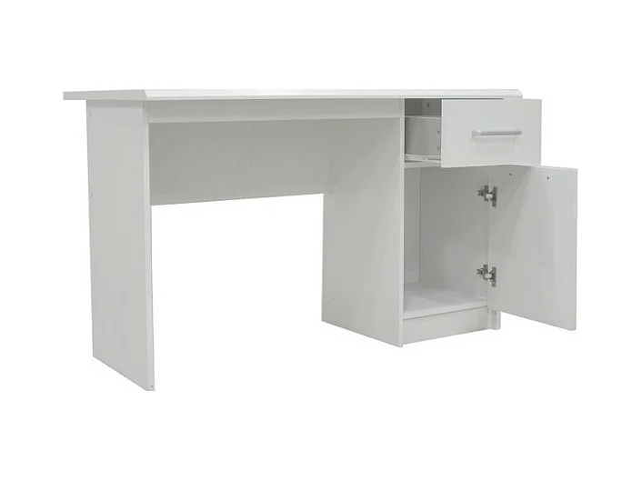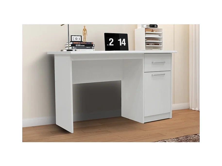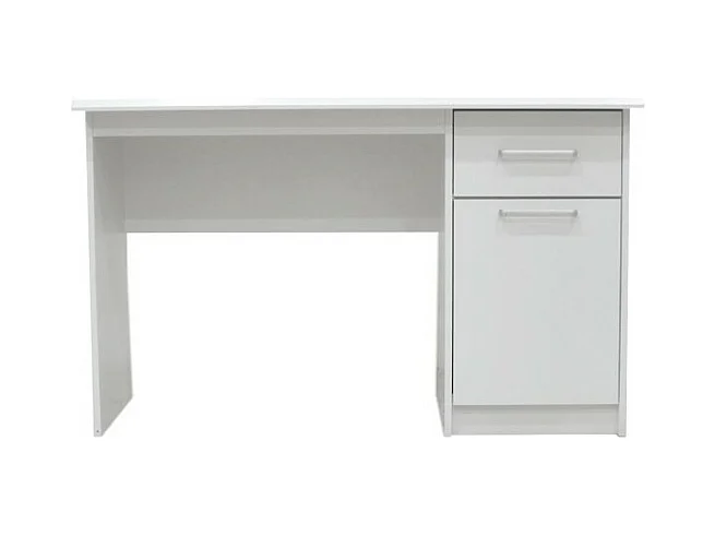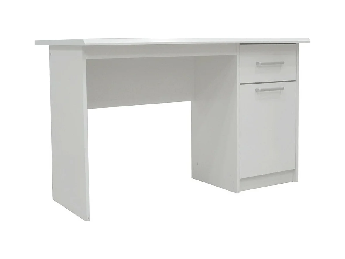 Escritorio recto de la colección PRAGA con un cajón y una puerta de color blanco.